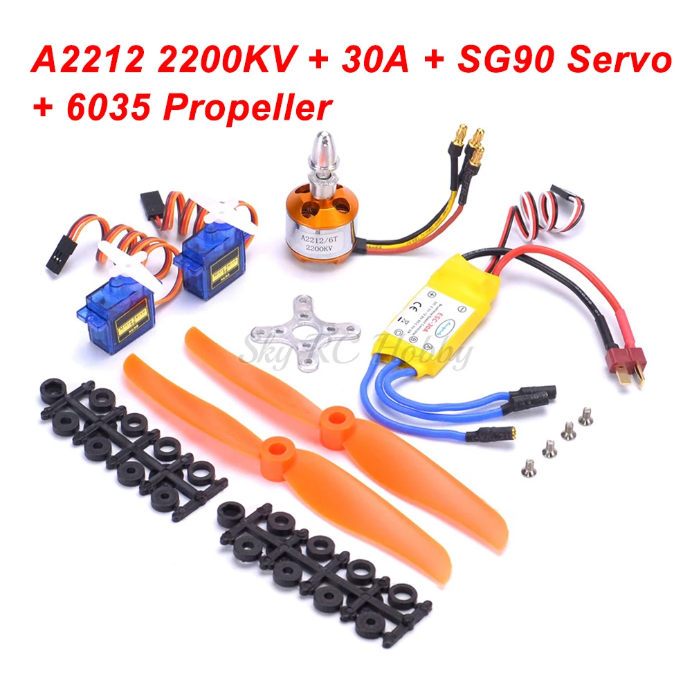 A2212 2212 1000KV 1400KV 2200KV бесщеточный двигатель 30A 40A ESC SG90 Micro Servo 6035 8060 Prop для радиоуправляемого вертолета с неподвижным крылом