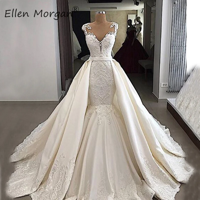 Атласные свадебные платья русалки, съемные юбки цвета слоновой кости, реальные фотографии, богемные пляжные свадебные платья для женщин