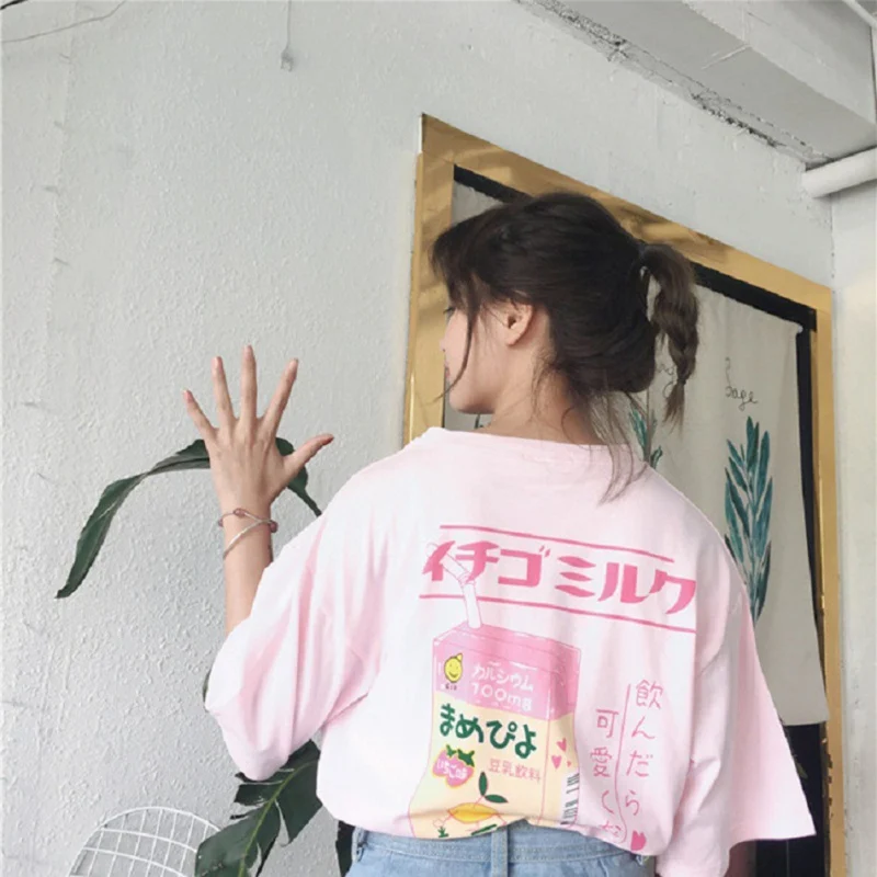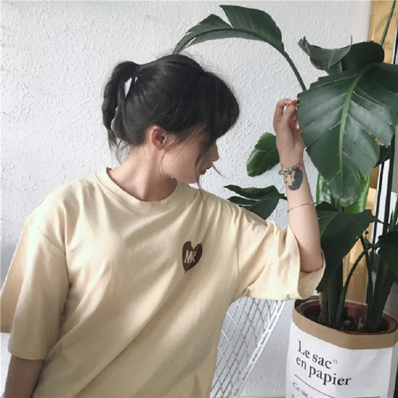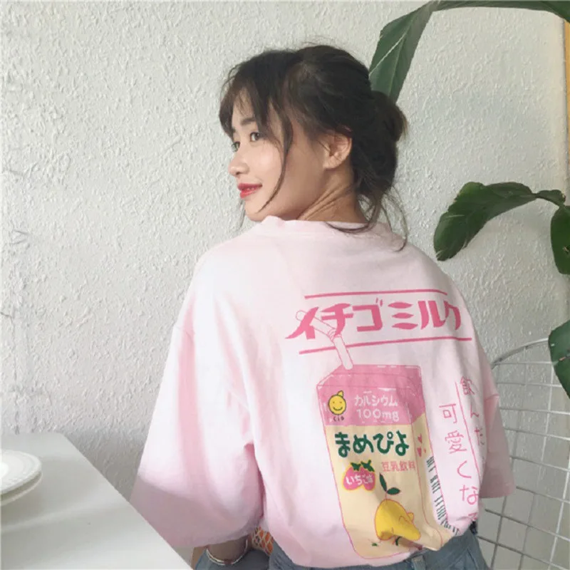 Футболка женская хлопковая в японском стиле, милая Свободная рубашка в стиле Харадзюку, с коротким рукавом, на лето
