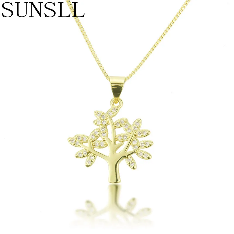 Медное циркониевое ожерелье SUNSLL с кулоном в виде дерева жизни, золотые аксессуары, благородные и элегантные женские ювелирные изделия, подарок, ожерелье для вечеринки, подарки
