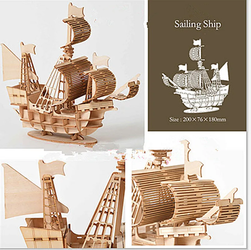 Лазерная резка сделай сам парусный корабль, игрушки, 3D деревянная головоломка, Сборная модель, деревянные наборы для рукоделия, настольное украшение для детей