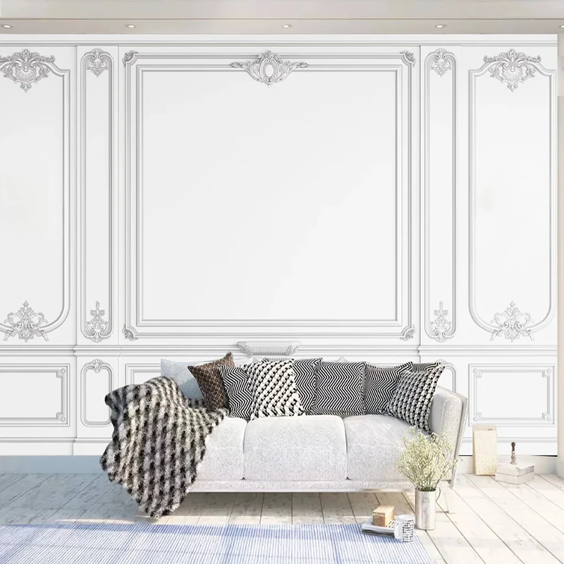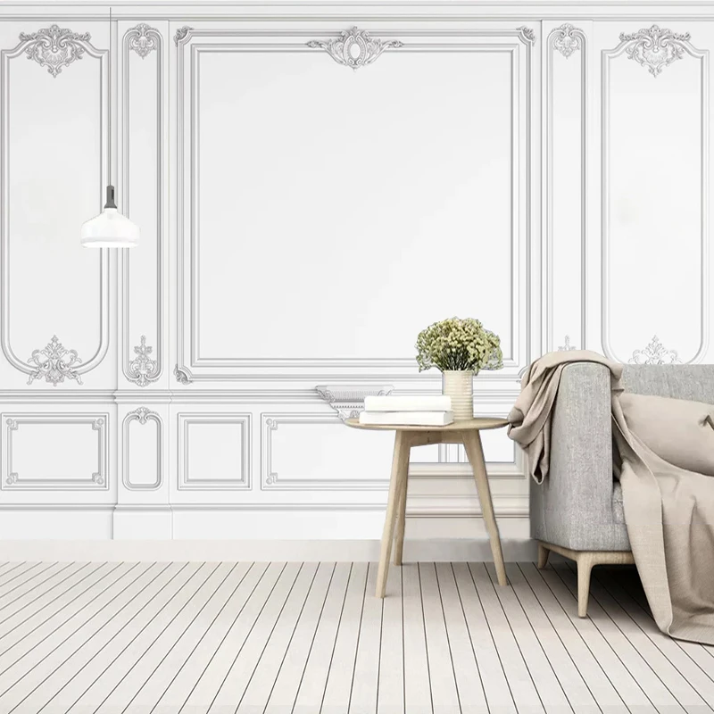Пользовательские 3D Настенные обои, белые штукатурные линии, Европейский стиль, гостиная, диван, ТВ фон, фото обои, домашний декор 3D