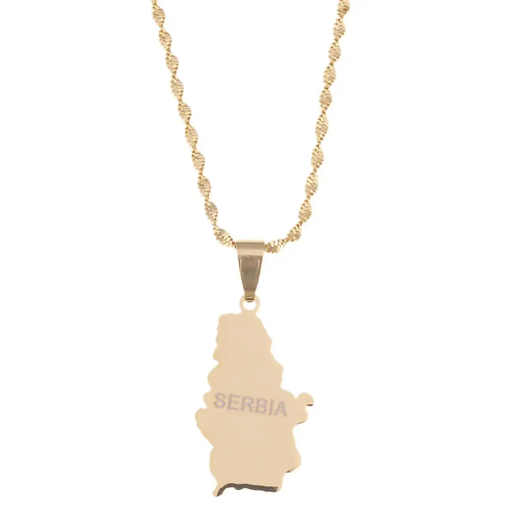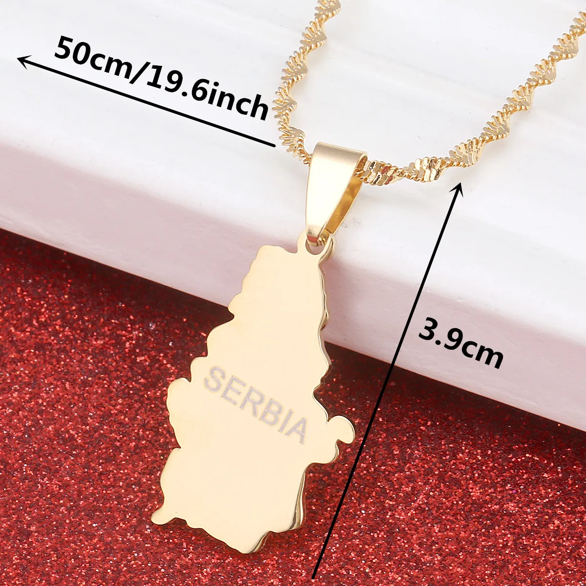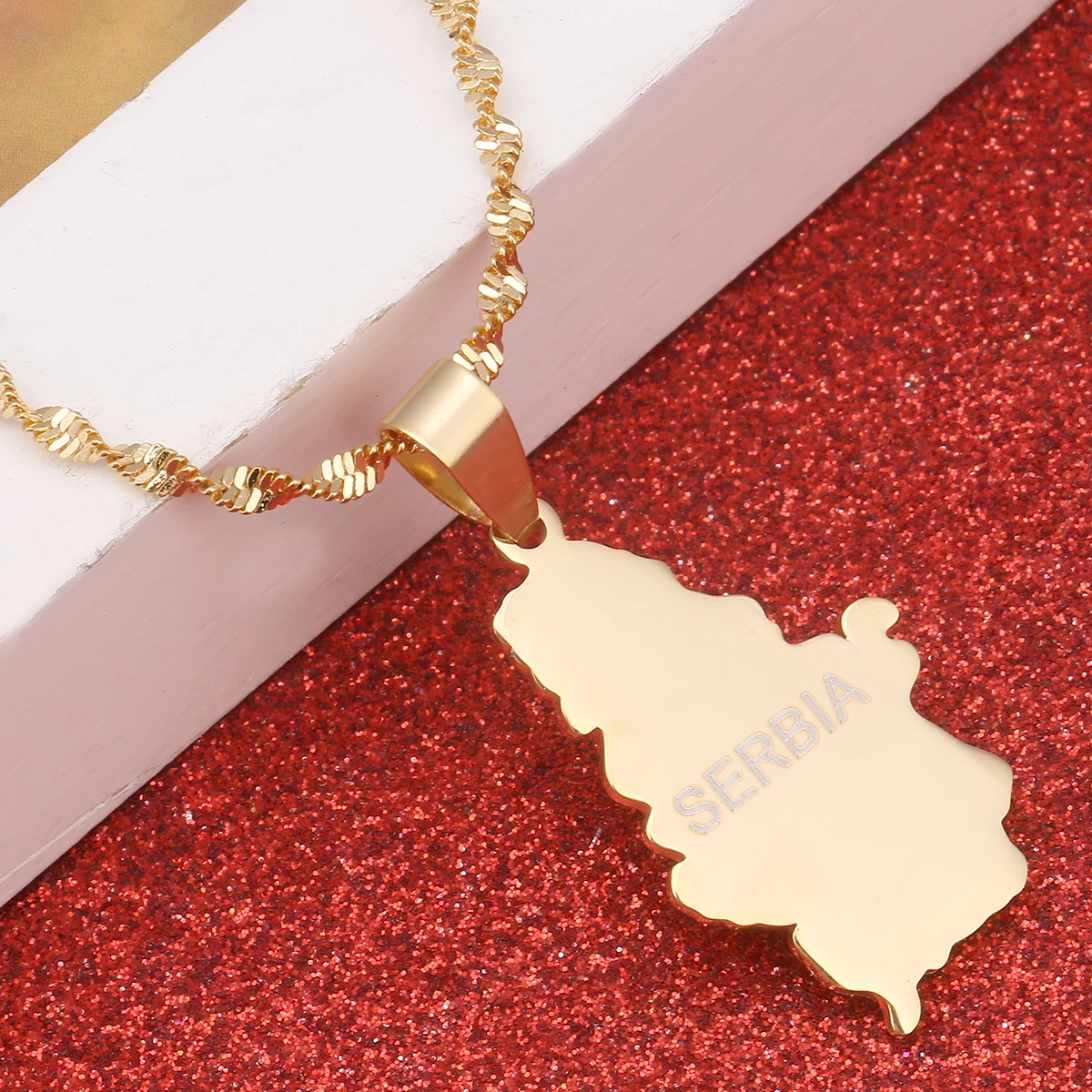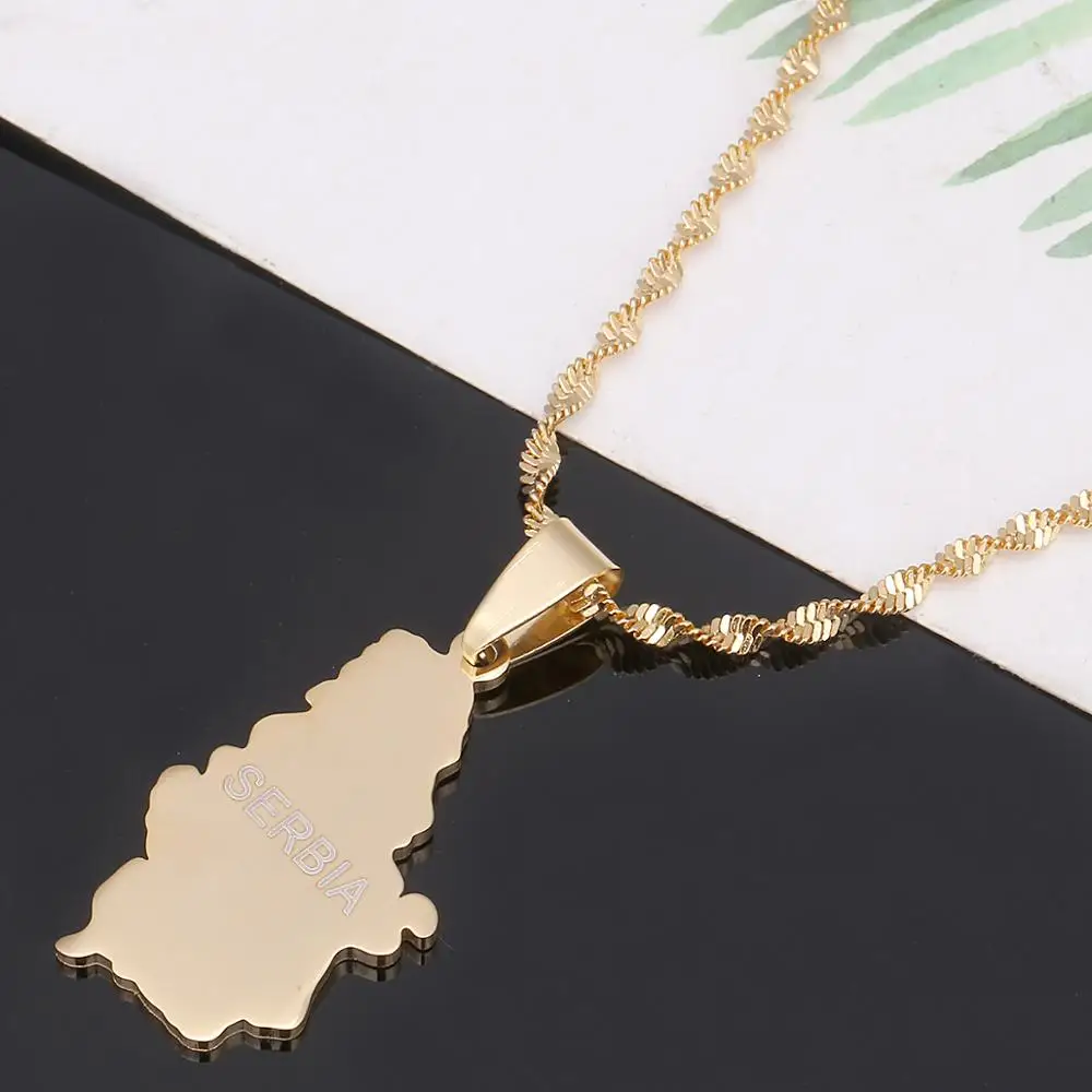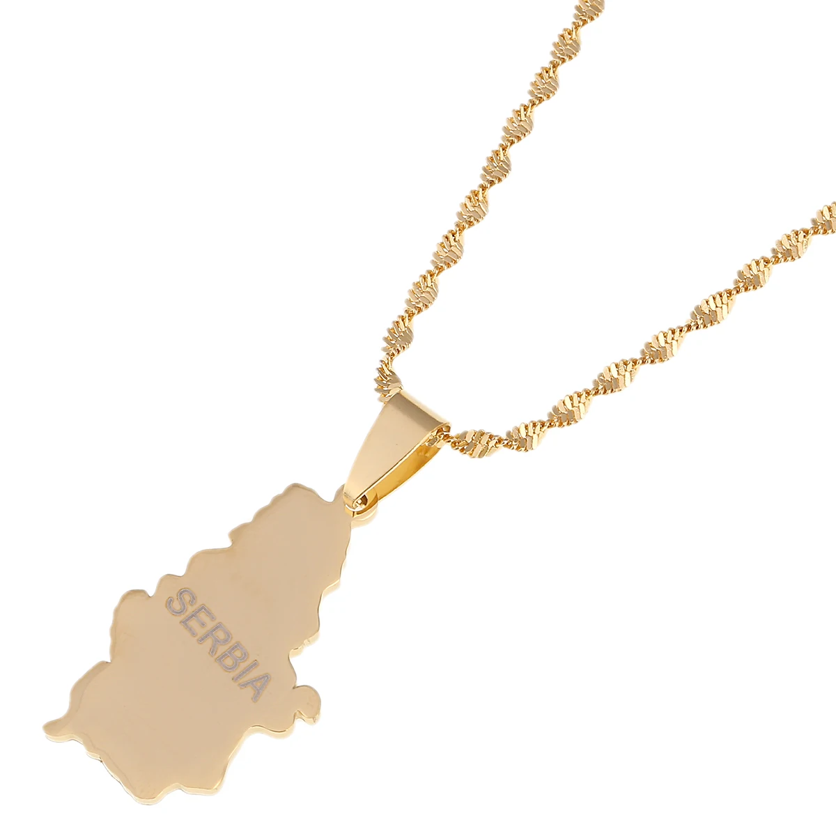 Нержавеющая сталь, сербийская карта, кулон, ожерелья для женщин, девушек, золотой цвет, сербы, очаровательные подарочные украшения