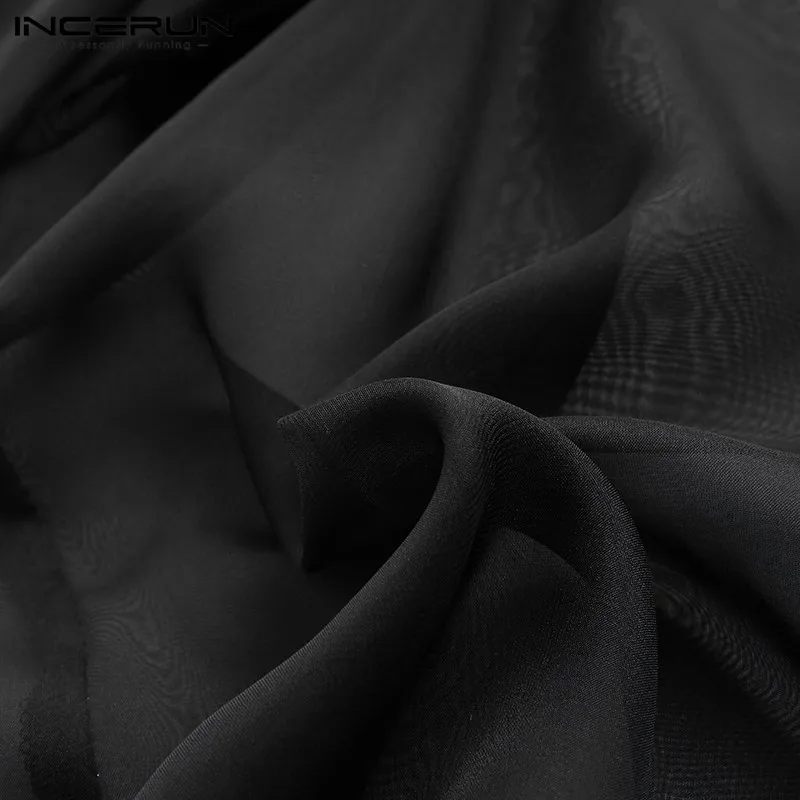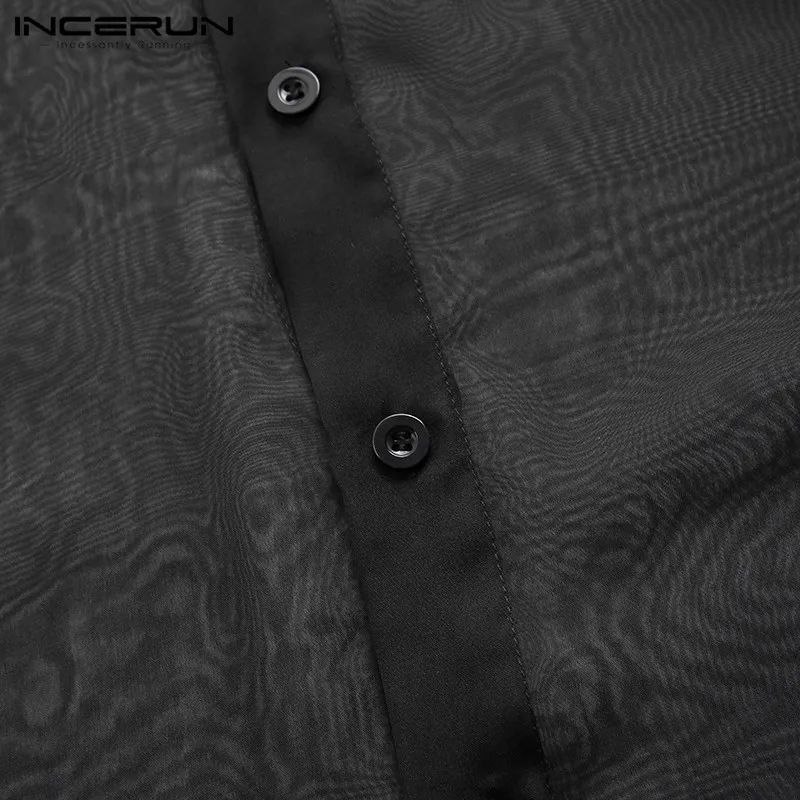 Стильная сетчатая рубашка INCERUN, Мужская Прозрачная Сексуальная рубашка с отложным воротником, на пуговицах, 2022, Мужская прозрачная рубашка с длинным рукавом для вечерние ринки, ночного клуба, женская