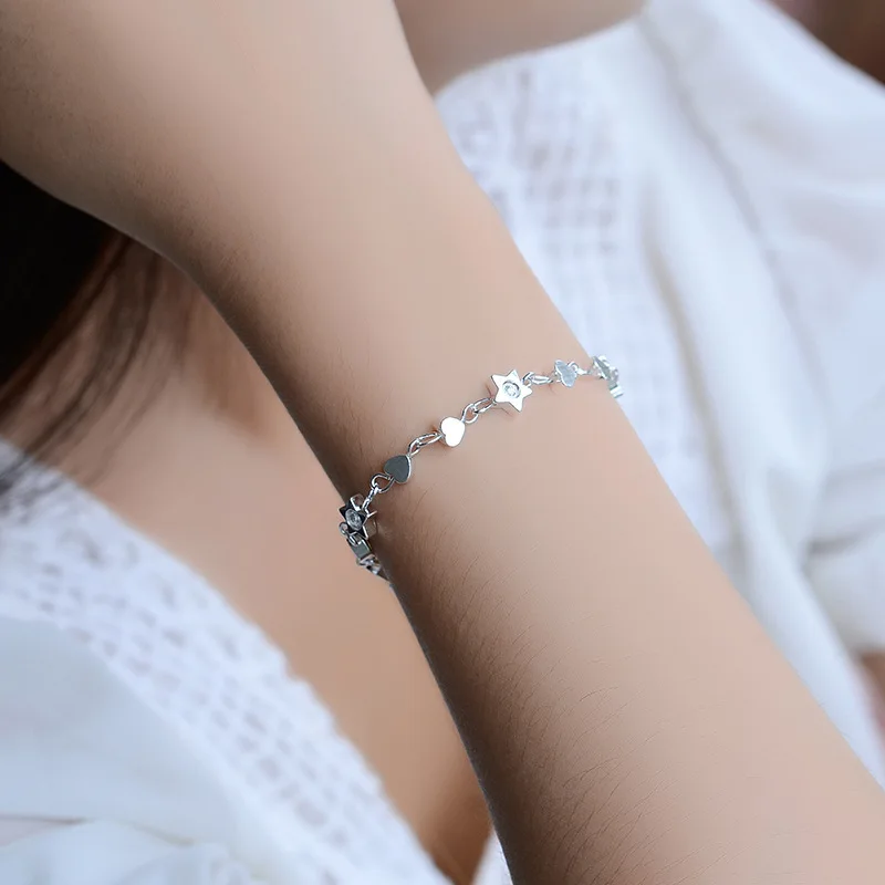 Браслет из стерлингового серебра 925 пробы, Новые Креативные аксессуары, микс и сочетание звезд любви, модные ювелирные изделия для женщин