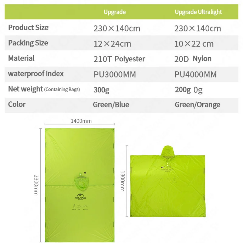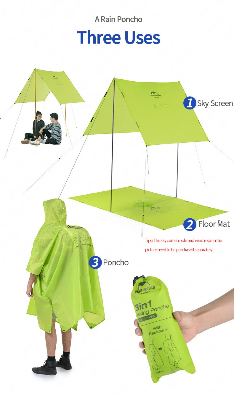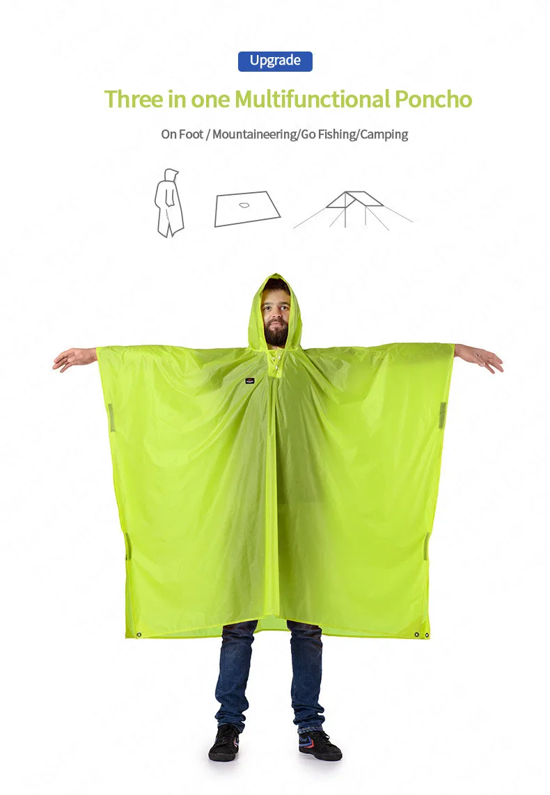 Многофункциональный дождевик Naturehike 3 в 1, портативный дождевик для пеших прогулок и походов, пончо от дождя 0,3 кг, складной дождевик для непромокаемой палатки