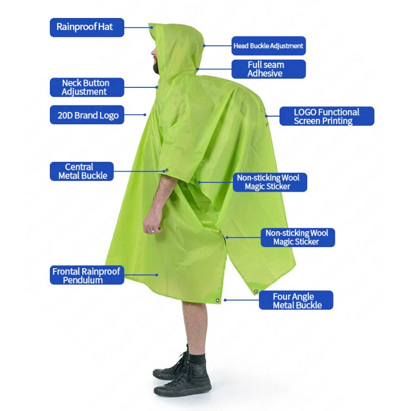 Пончо-дождевик с капюшоном, многофункциональный, для походов, кемпи...