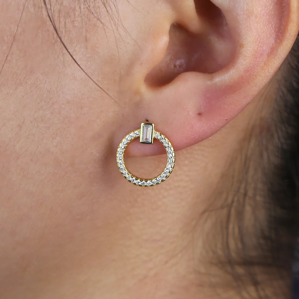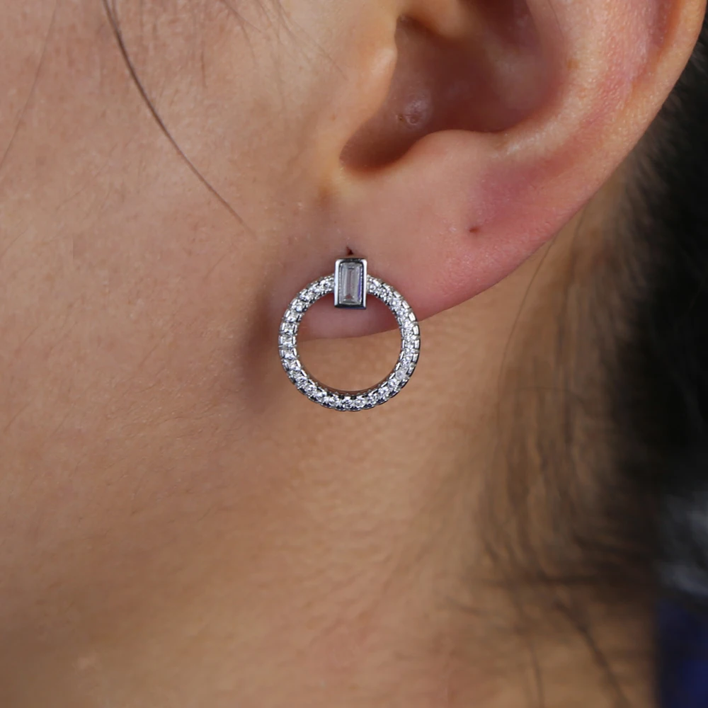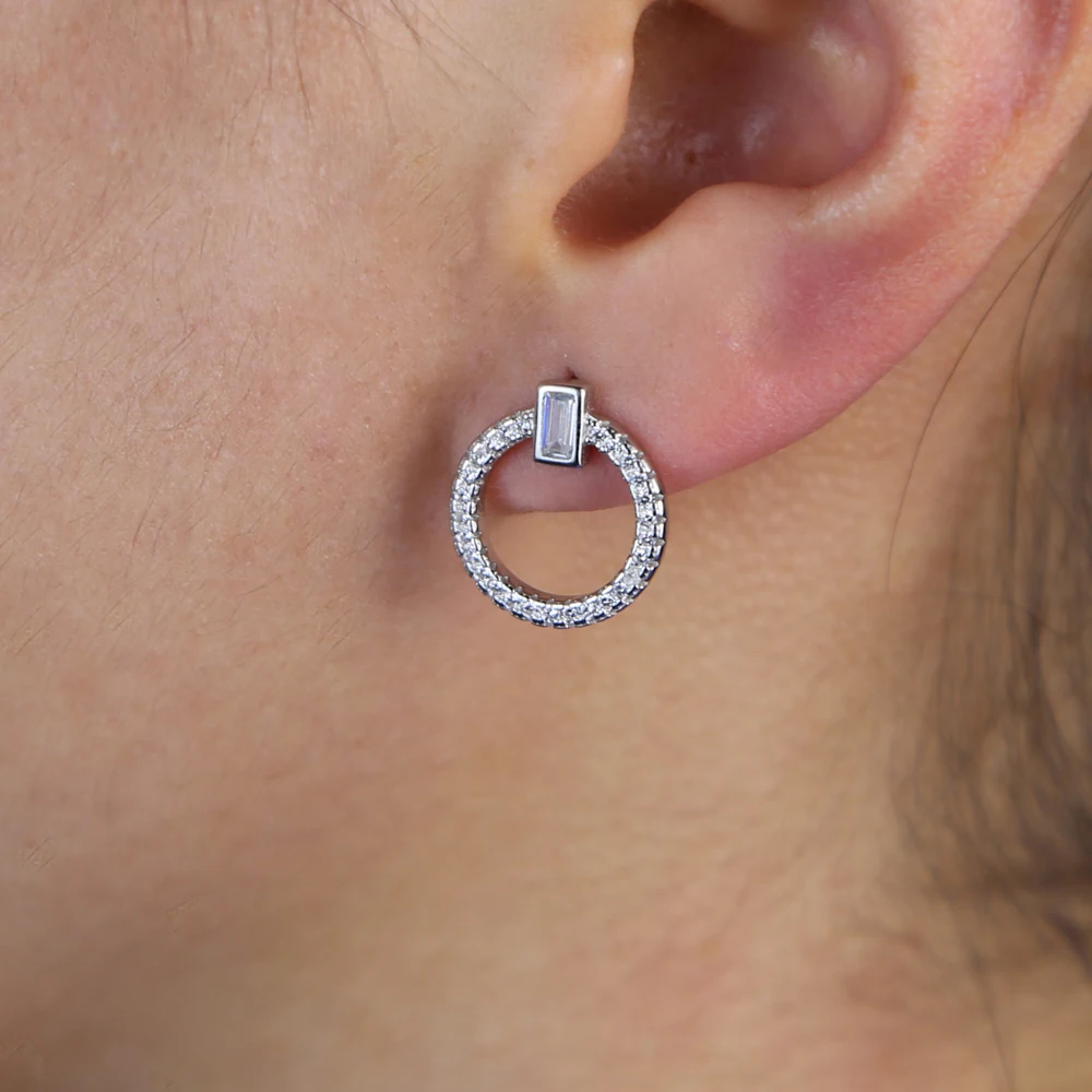 2020 Новое поступление простая серьга геометрической формы 5A sparking cz проложенный Круглый Круг девочка шпилька 925 пробы серебро