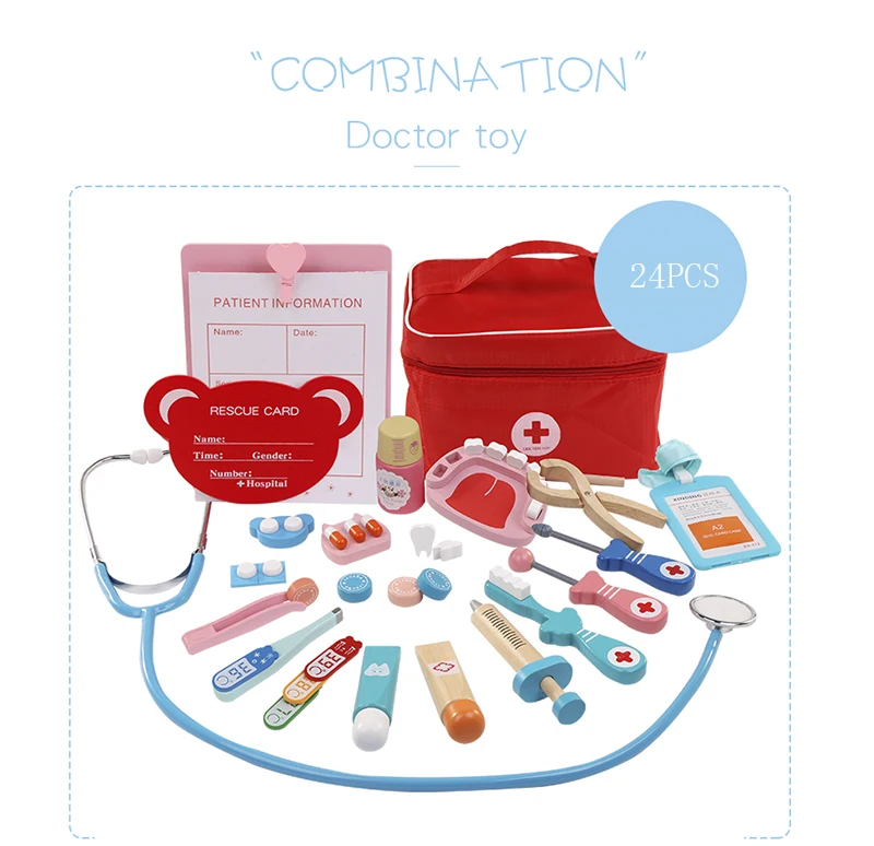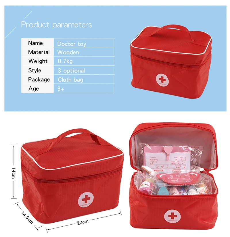 Деревянные игрушки для докторов, красный медицинский набор, набор для стоматолога, коробка для лекарств, тканевый мешок, игрушки для детей, симулятор, игра, дом, игрушка