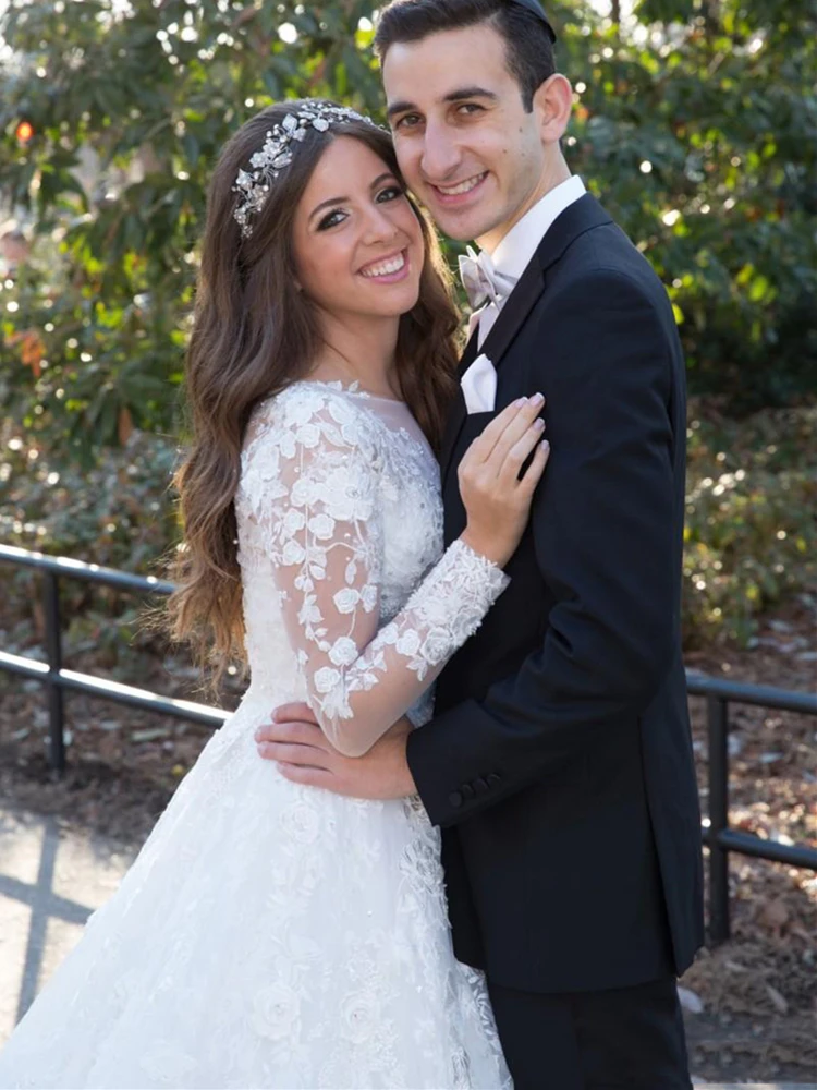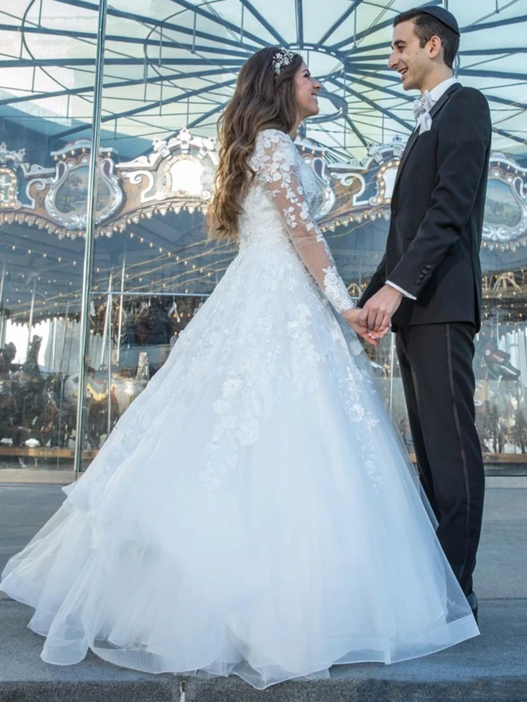 Свадебное платье с длинным рукавом, вышитое бисером, Цветочная аппликация, кружево, тюль, линия, длина до пола, свадебное платье, Vestido De Noiva, на заказ