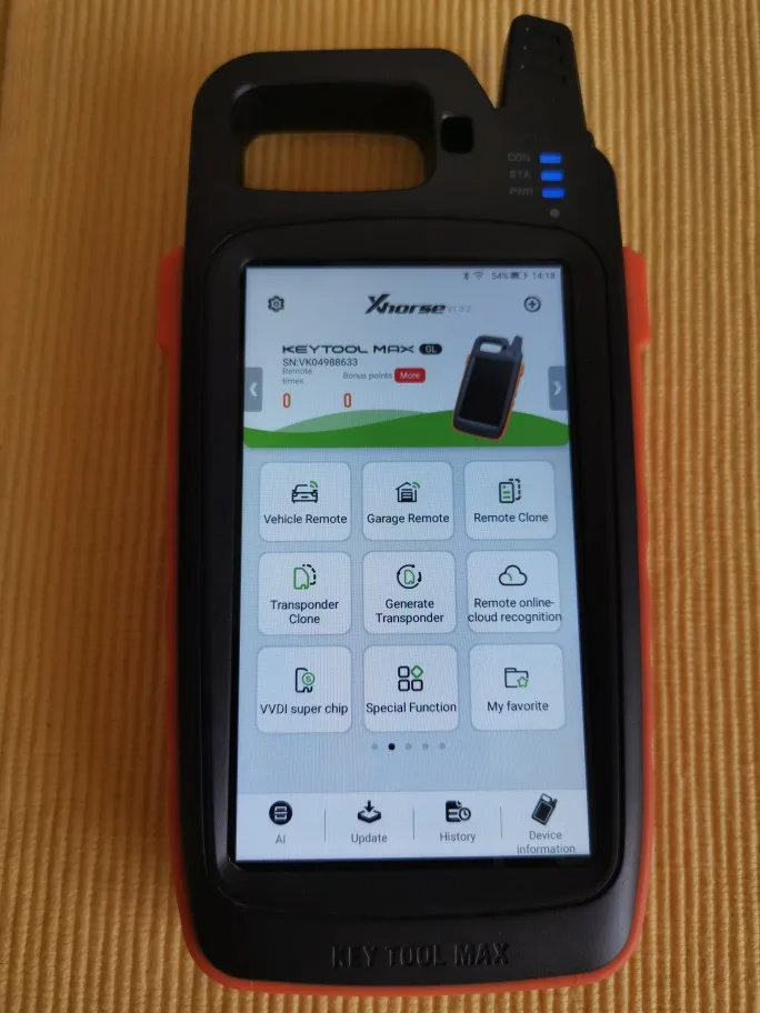 Xhorse Key Tool Max-это превосходное умное устройство с многофункциональным. Встроенный интерфейс связи Bluetooth и Wi-Fi позволяет подключать устройство к машине для резки ключей Xhorse, мини-инструменту OBD и другим продуктам для выполнения конкретных операций. Он оснащен ЖК-экраном HD с четким интерфейсом, прост в использовании и гибкостью.
