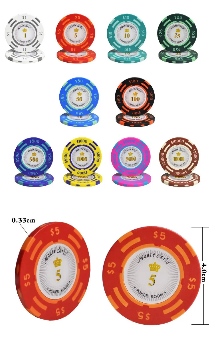5 шт.лот глиняный покерный чип для казино набор покерных чипов мета...