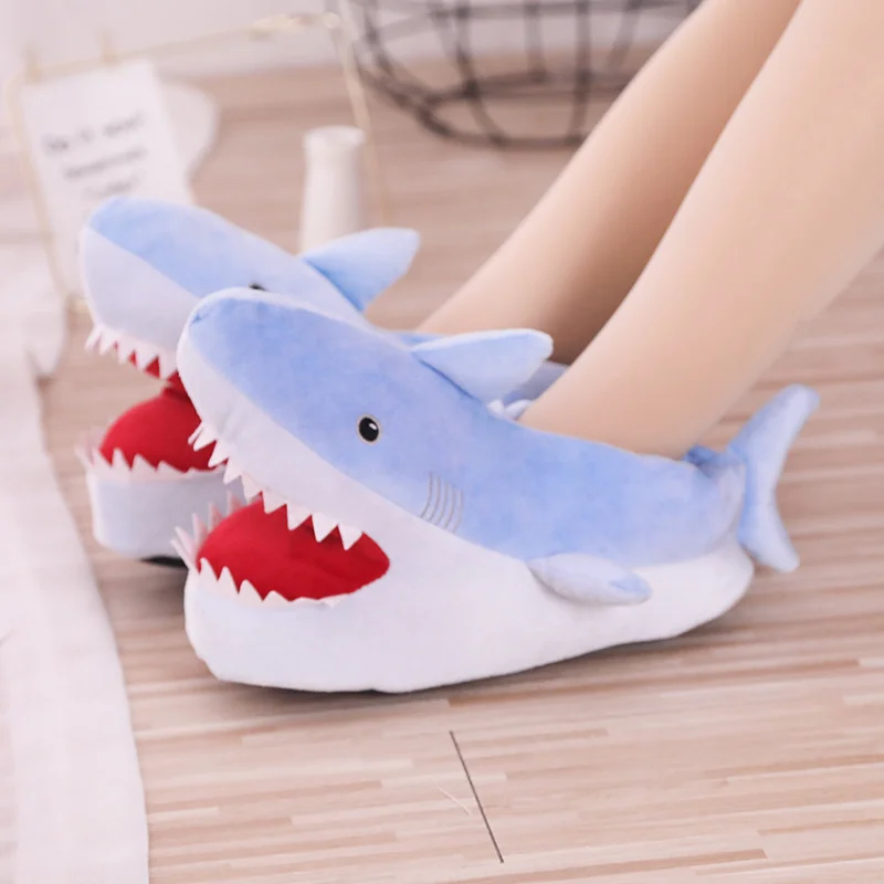 Плюшевые тапочки в форме акулы; Зимние домашние теплые хлопковые тапочки