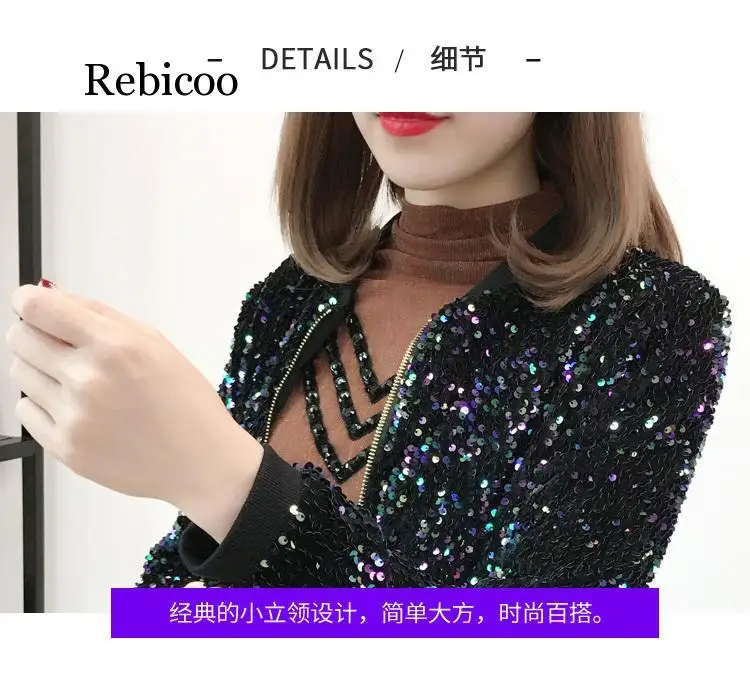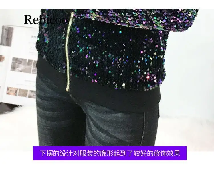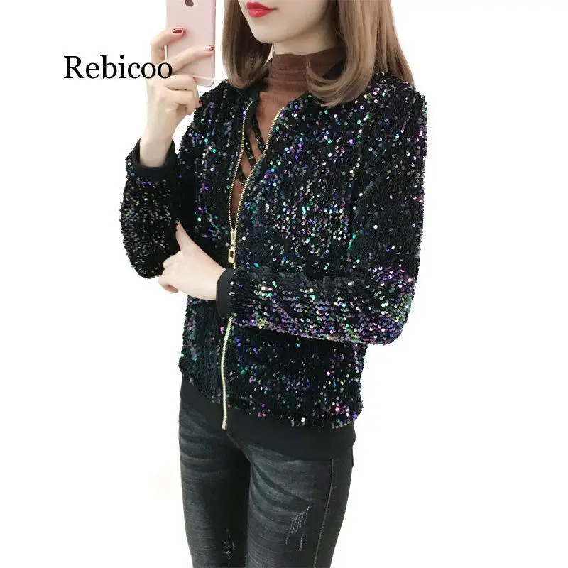 Блестящая Черная куртка с блестками, Женская бейсбольная куртка с длинным рукавом, куртки Casaco, Женская куртка-бомбер, Женская бейсбольная одежда в стиле Харадзюку
