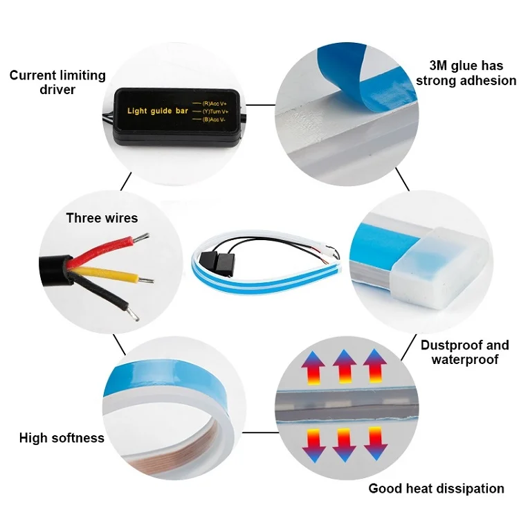 Тип: Гибкая мягкая Светодиодная лентаМатериал: АБС + силиконТип СВЕТОДИОДА: 2835 SMDВходное напряжение: 24 ВЦвет света: белый и желтыйОсвещаемая длина: 30 см/45 см/60 смПодходит для: Универсальный Автомобильный СтайлингОсобенностиСветодиодные DRL гибкие мягкие светодиодные полосы света для автомобиля.Можно нарядить фары, похожие на оригинальный эффект.Водонепроницаемый-как для внутреннего/внешнего использования автомобиля, просто установка.ПрименениеАнгельский глаз, свет поворота фар.При движении свет белый, в то время как он постоянно течёт желтый при повороте.Проводное соединениеКрасный провод: подключение к фаре или АКК (+)Черный провод: подключение к наземному светуЖелтый провод: подключение к сигналу поворота (+)Пакет2 шт DRL светодиодные полосы