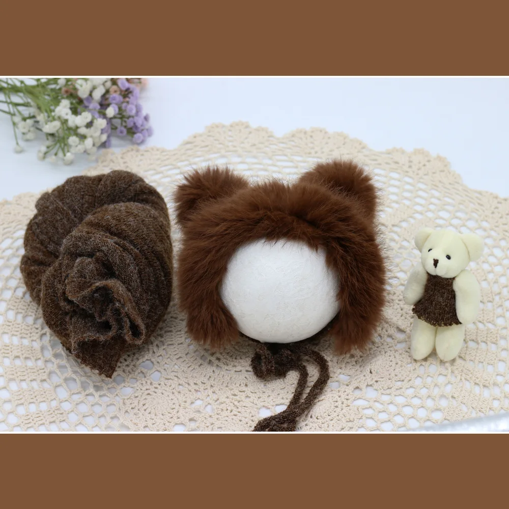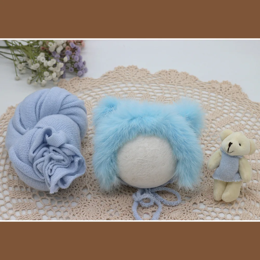 3 шт.компл. реквизит для фотосъемки новорожденных одеяло шляпа Детская фотография обертка реквизит медведь кукла ребенок Фото аксессуары