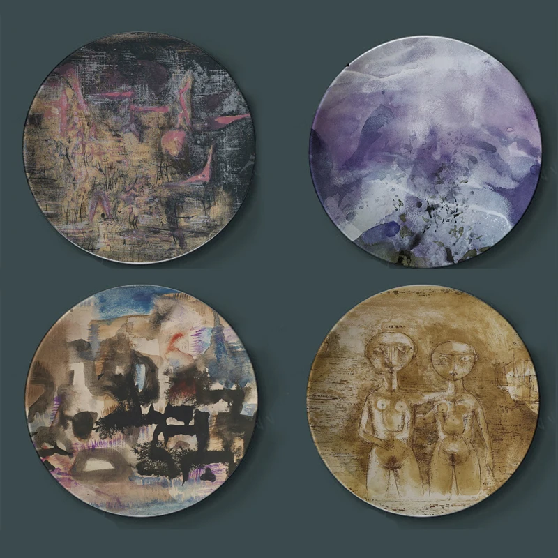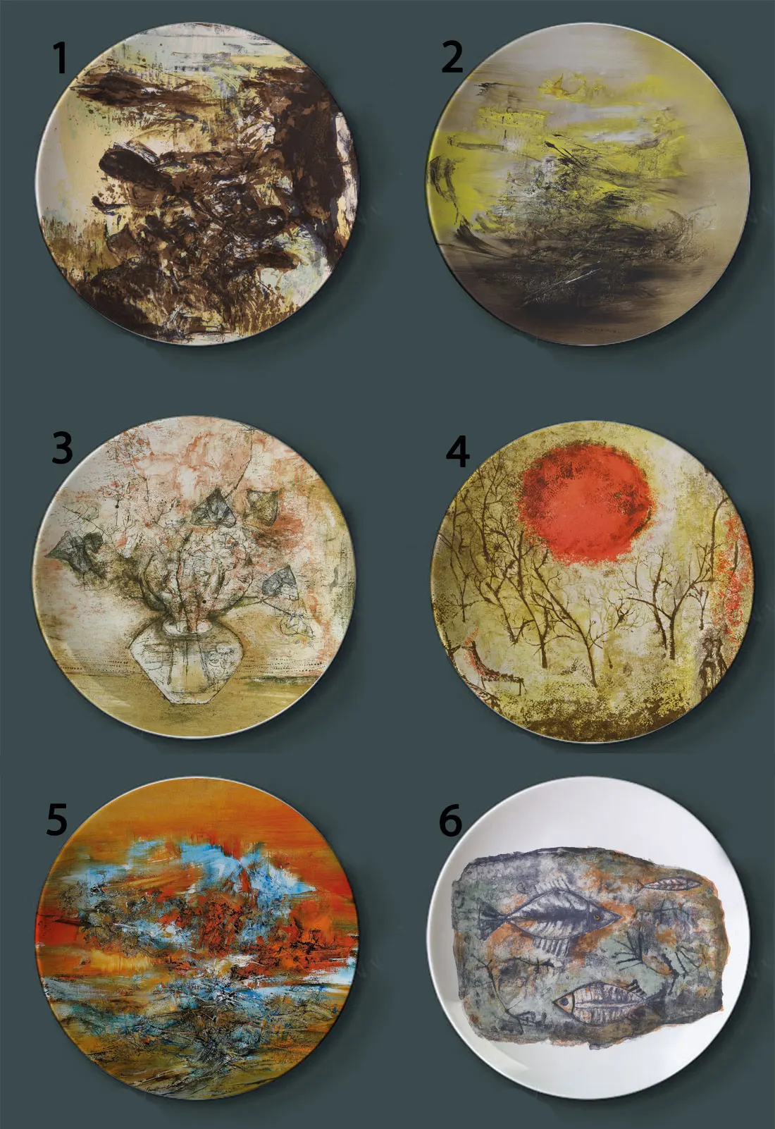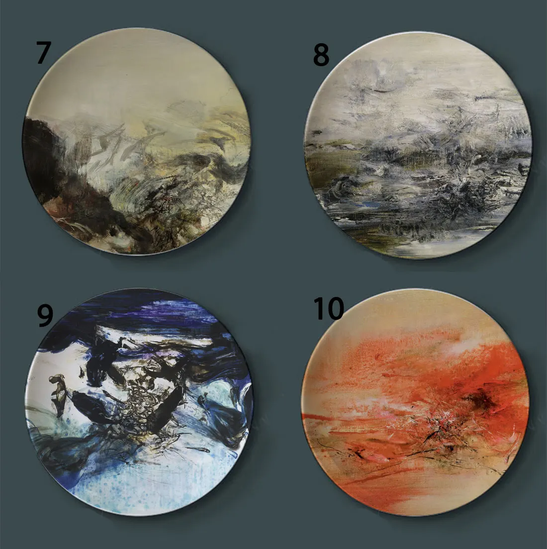 Современная картина Zao Wou-Ki, абстрактная картина маслом, керамическая тарелка, домашняя декоративная тарелка, Круглый Красочный поднос