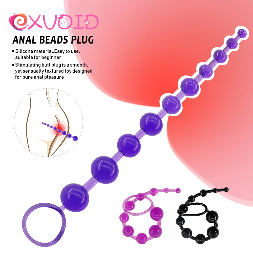 Силиконовая Анальная пробка EXVOID, длинный массажер простаты, интимные игрушки для мужчин и женщин, Анальная пробка для начинающих, вагинальные шарики с 10 шариками
