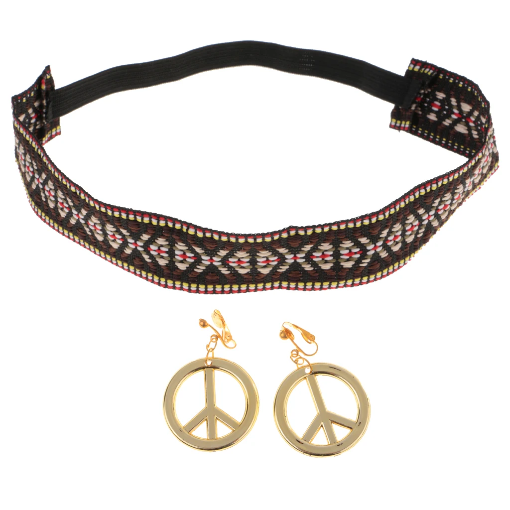 Хиппи мир набор символ мира повязка на голову солнцезащитные очки серьги ожерелье Хипсит костюм для Маскарадного костюма для вечевечерние Canival реквизит