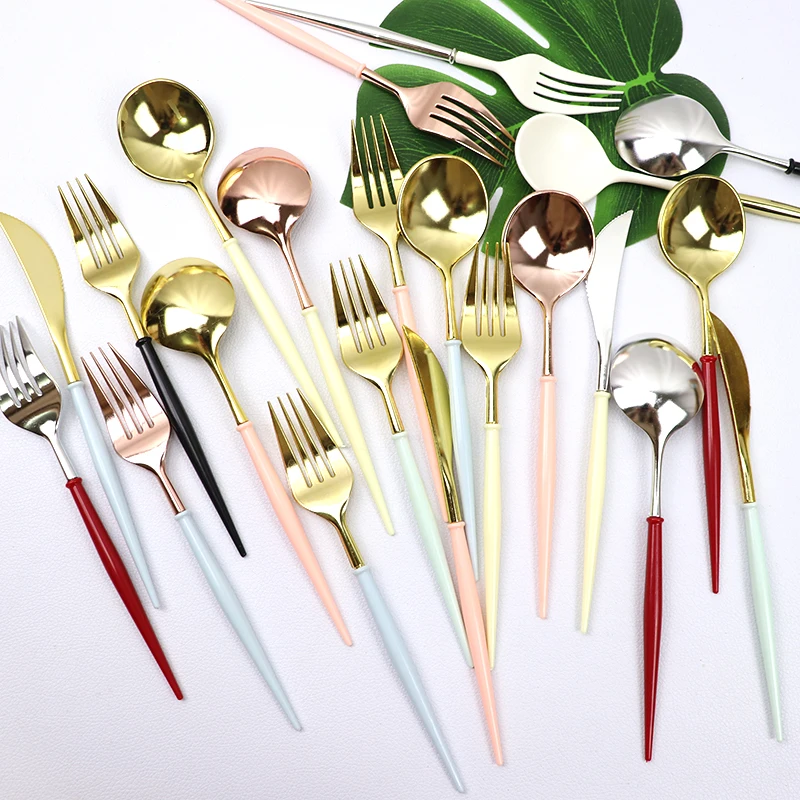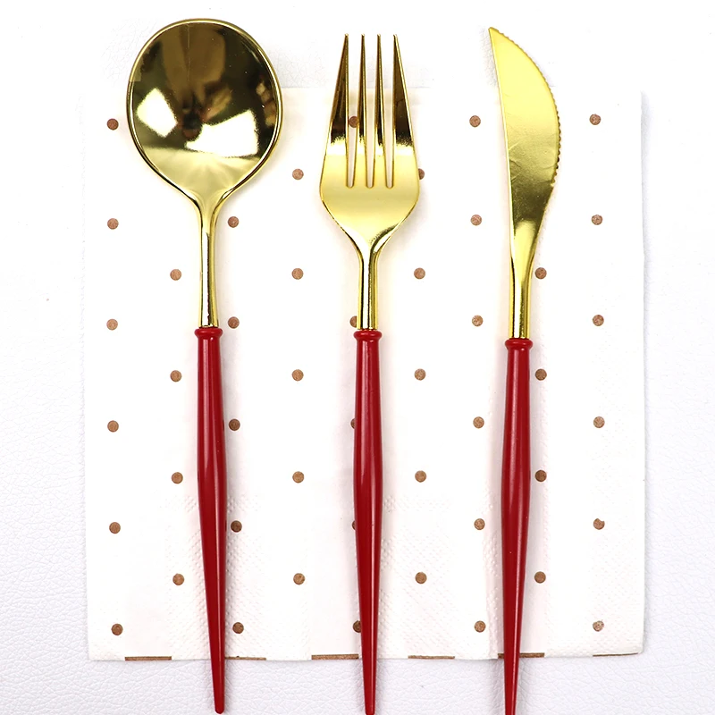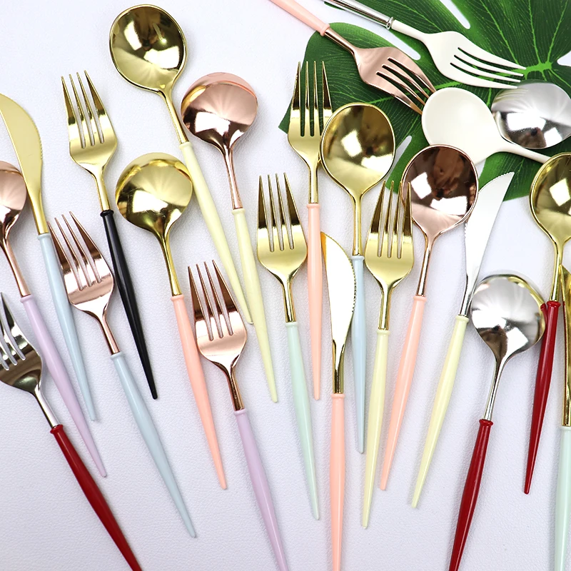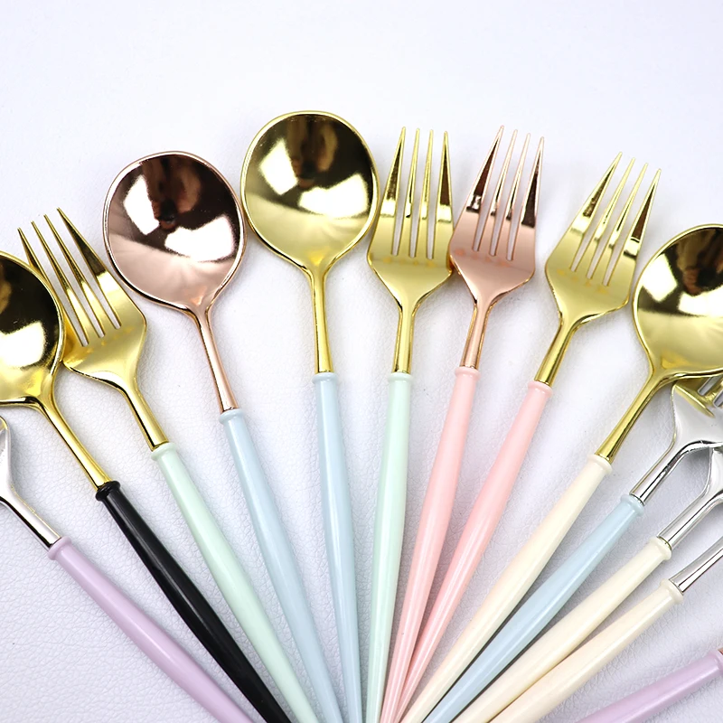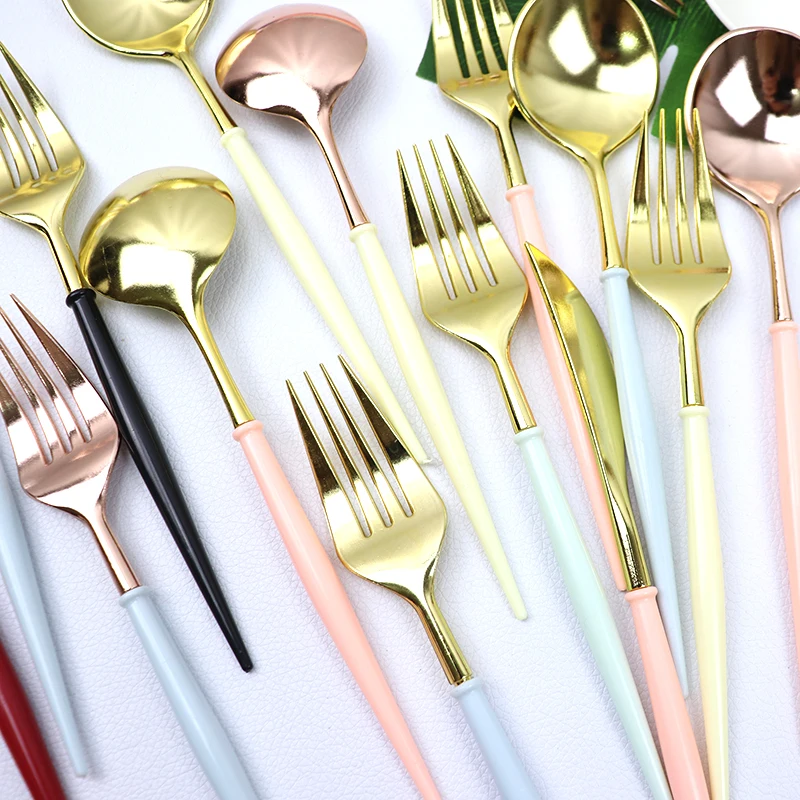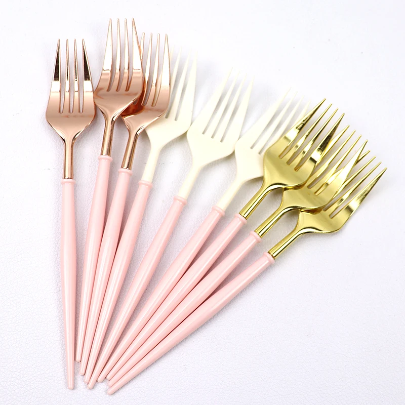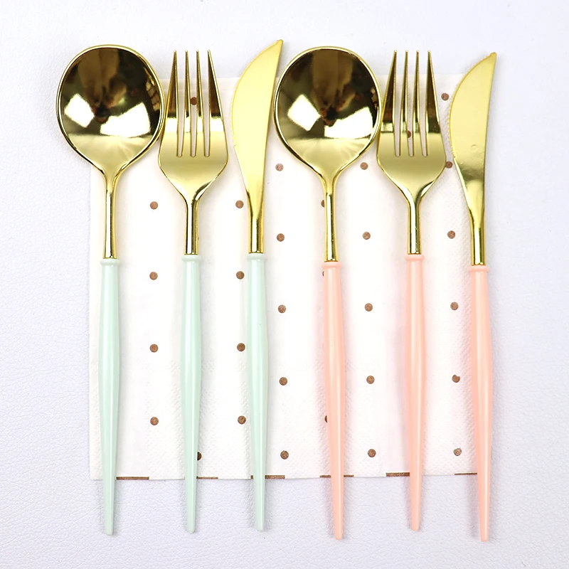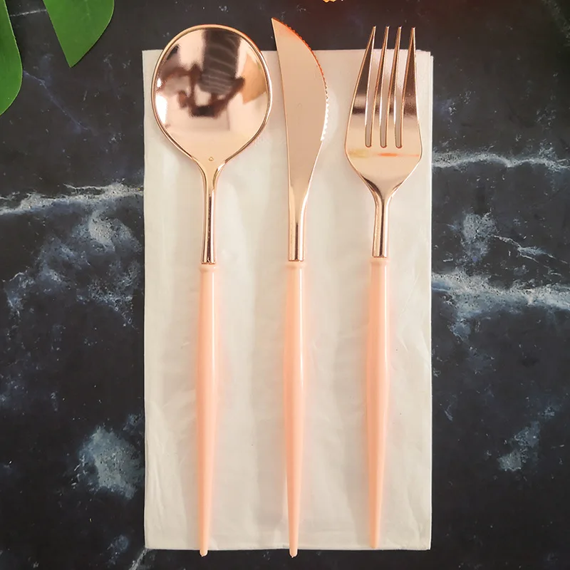 Ножи 20 см, ложки, вилки, одноразовые столовые приборы для вечерние, пластик, розовое золотосеребро, наборы посуды для свадьбы, дня рождения