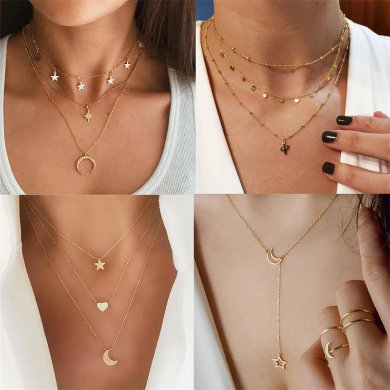 Винтажное многослойное ожерелье в богемном стиле 2020 Новое поступление ювелирное изделие Золотой кактус звезда луна кулон ожерелье модное эффектное