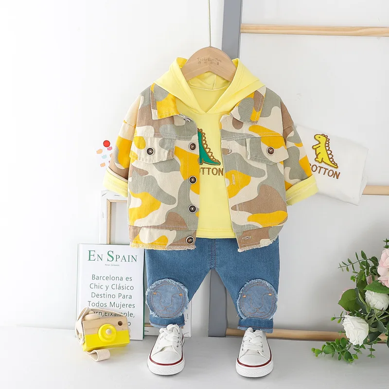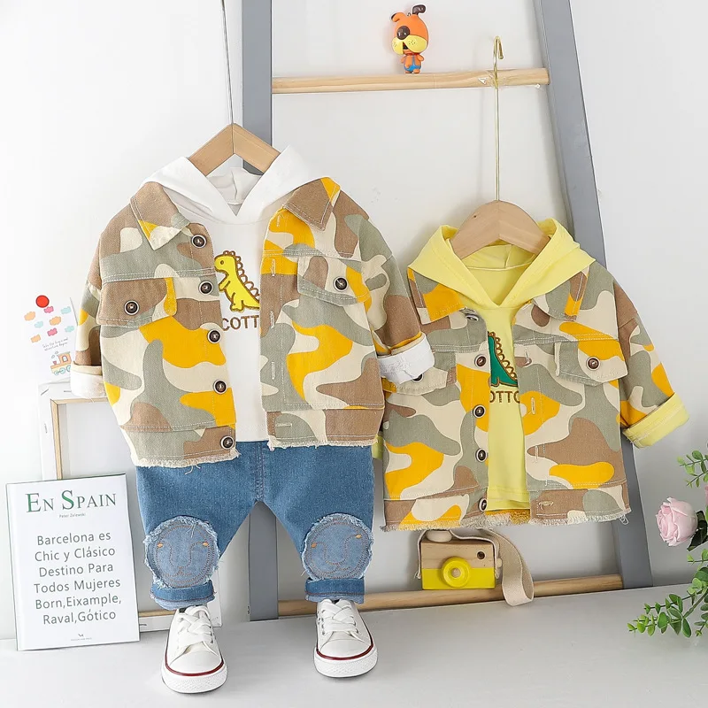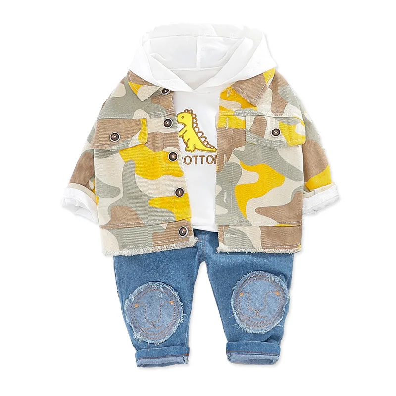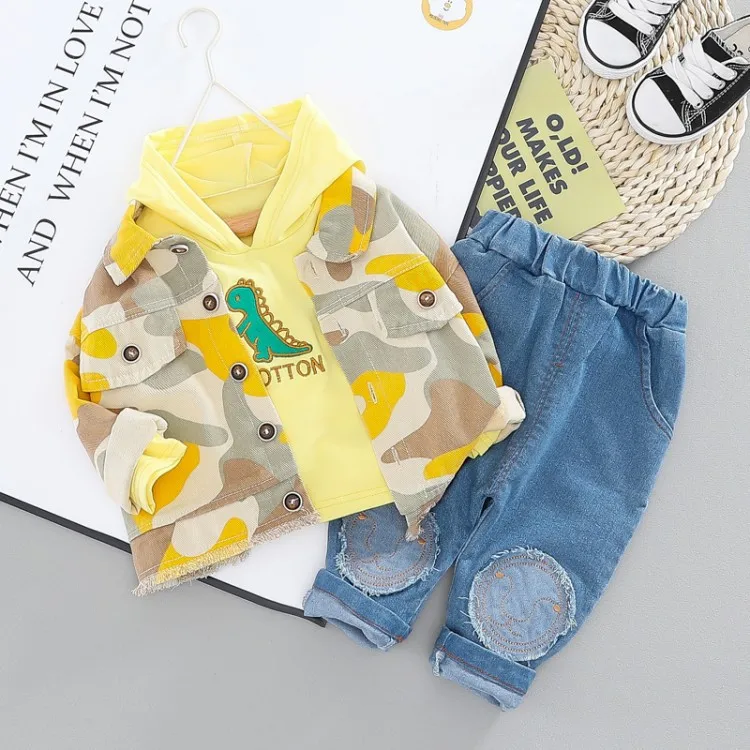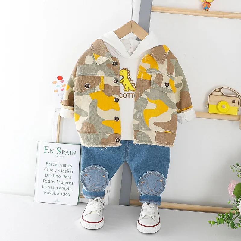 2021 новые комплекты одежды для маленьких мальчиков, детская камуфляжная куртка на весну-осень + свитер с капюшоном + джинсы, модная одежда из 3 предметов для мальчиков 1-3 лет