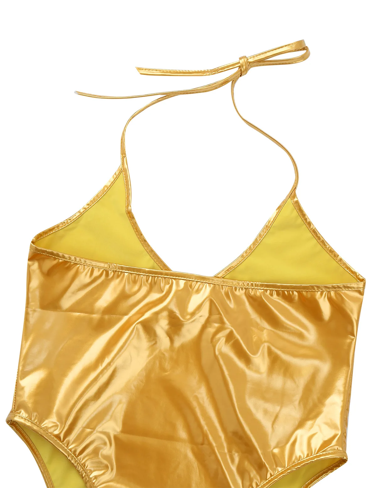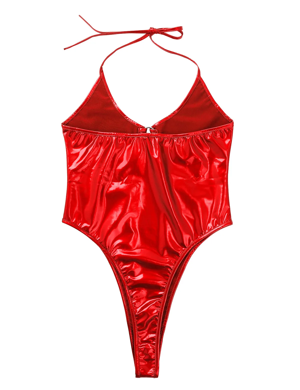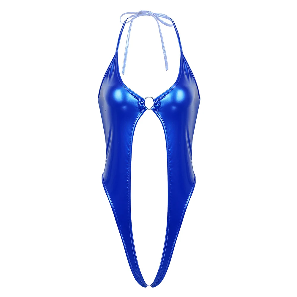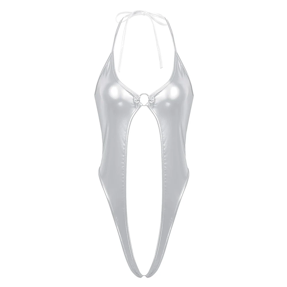 Женское популярное цельнокроеное блестящее металлическое нижнее белье, купальник, боди, один размер подходит большинству. Дизайн с завязками на шее, Глубокий V-образный вырез и вырез спереди показывают ваши очаровательные изгибы, низкую спинку и высокий разрез ног. Глянцевый внешний вид и плотно прилегающий, изготовлен из гладкой и мягкой ткани, приятный для кожи, довольно удобный и кокетливый в носке. Идеально подходит для особенной ночи, Дня Святого Валентина, медового месяца, клубной одежды, костюмов или вечеринок и т. д. Перед заказом внимательно ознакомьтесь с указанным ниже размером, рекомендуется ручная стирка в холодной воде.