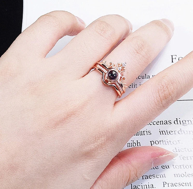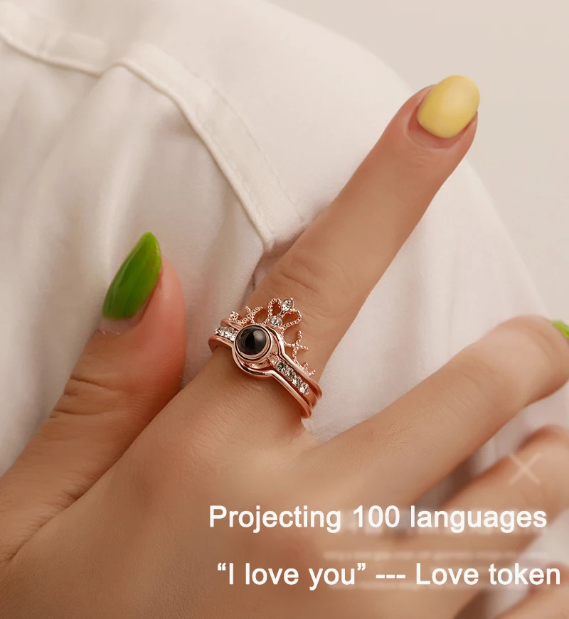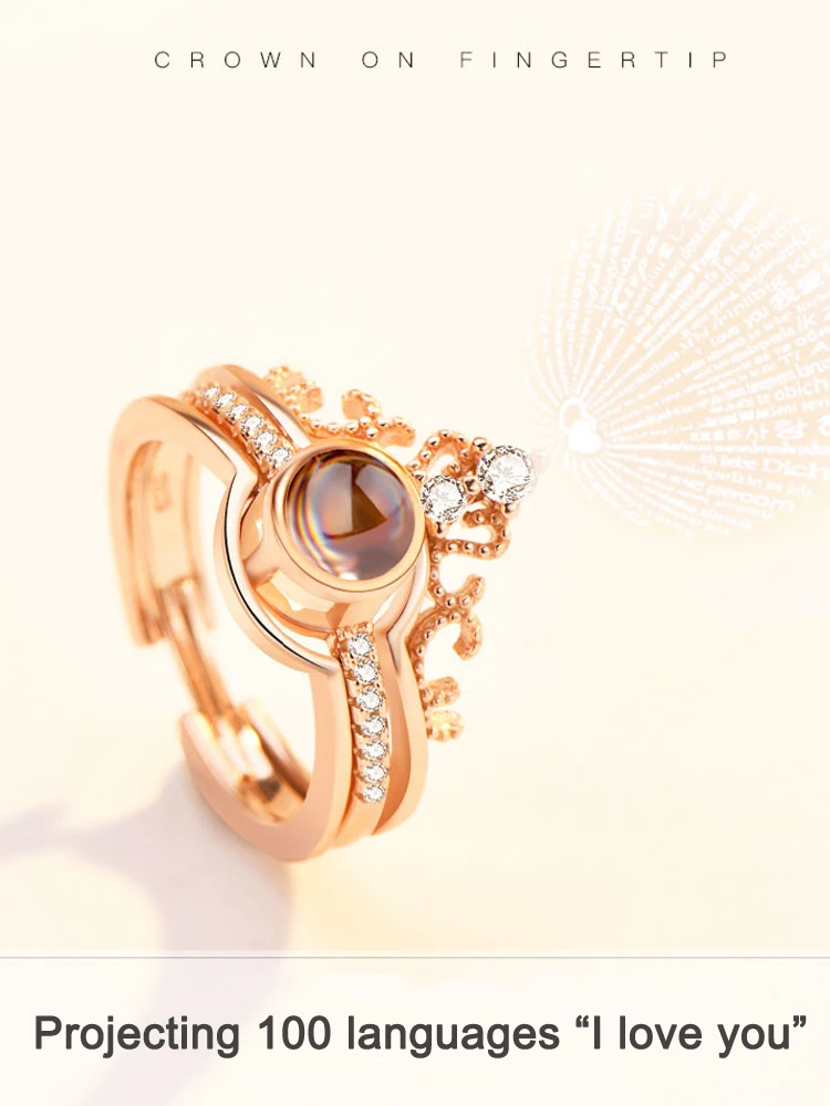 LMNZB I Love You проецируемое кольцо розовое золото и серебро 100 языков воспоминания о романтической любви обручальное кольцо подарок ювелирные изделия Прямая поставка
