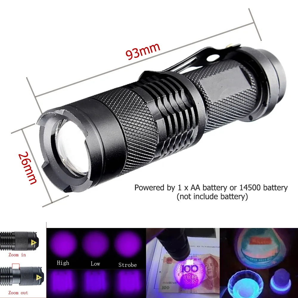 Новый мини портативный УФ Ультра светодиодный фонарик фиолетовый черный свет фонарь лампа для наружного освещения Охота Кемпинг лампа
