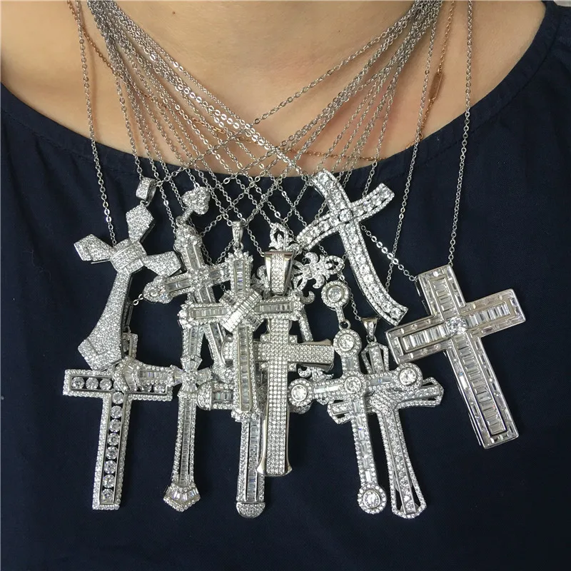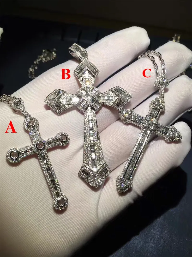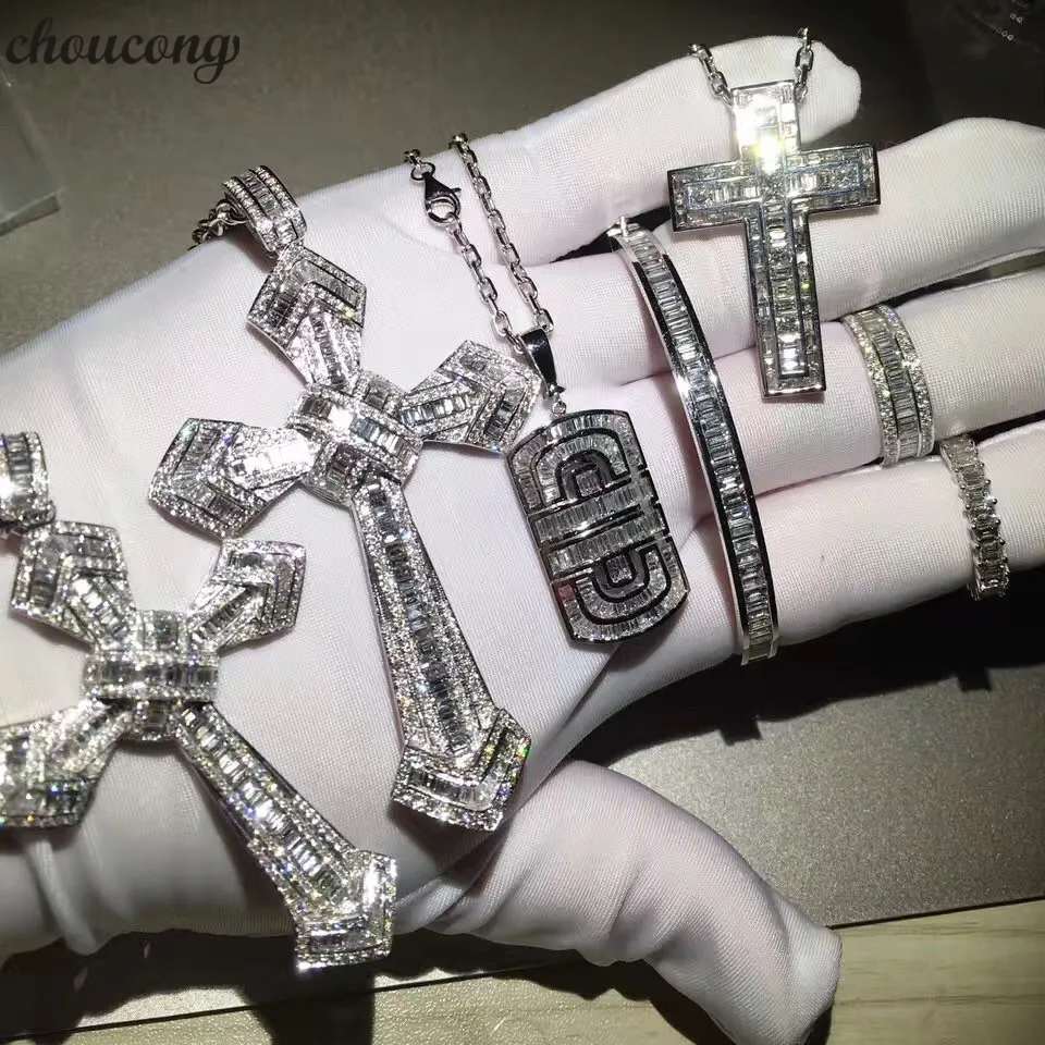 Роскошный большой кулон-Крест choucong AAAAA с фианитом, Очаровательное ожерелье из стерлингового серебра 925 пробы для женщин и мужчин, вечерние свадебные ювелирные изделия