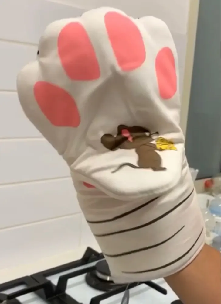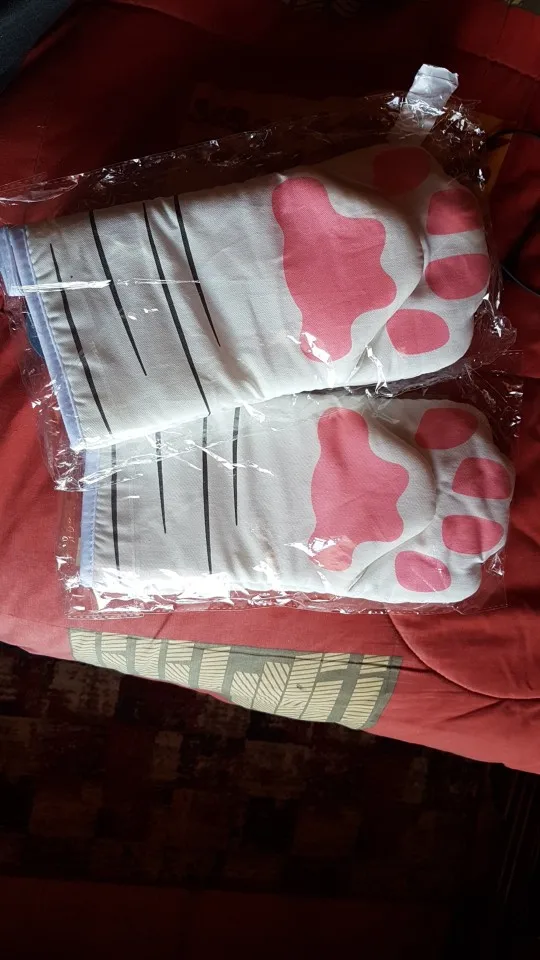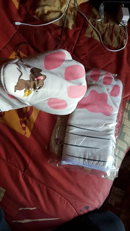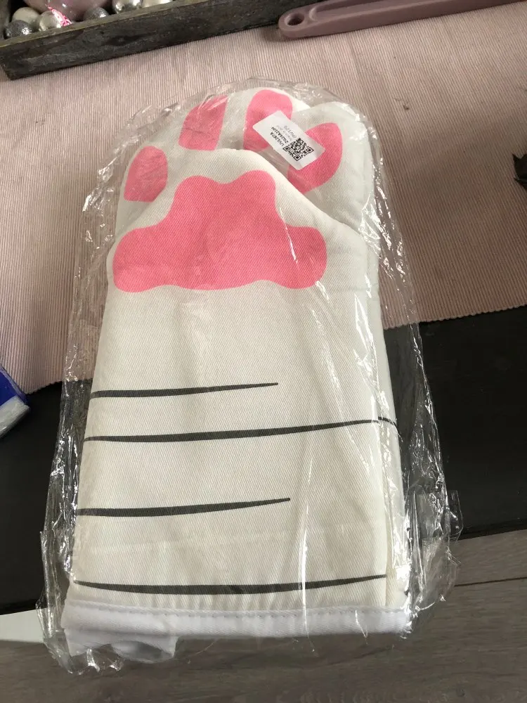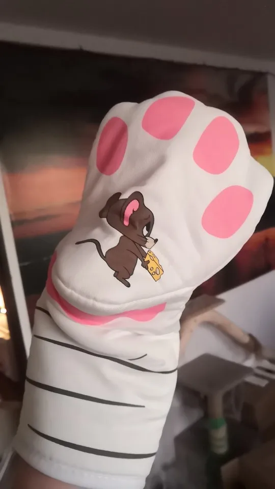 Перчатки-митенки с кошачьими лапками, термостойкие, Нескользящие, длинные, хлопковые, для выпечки, для микроволновой печи