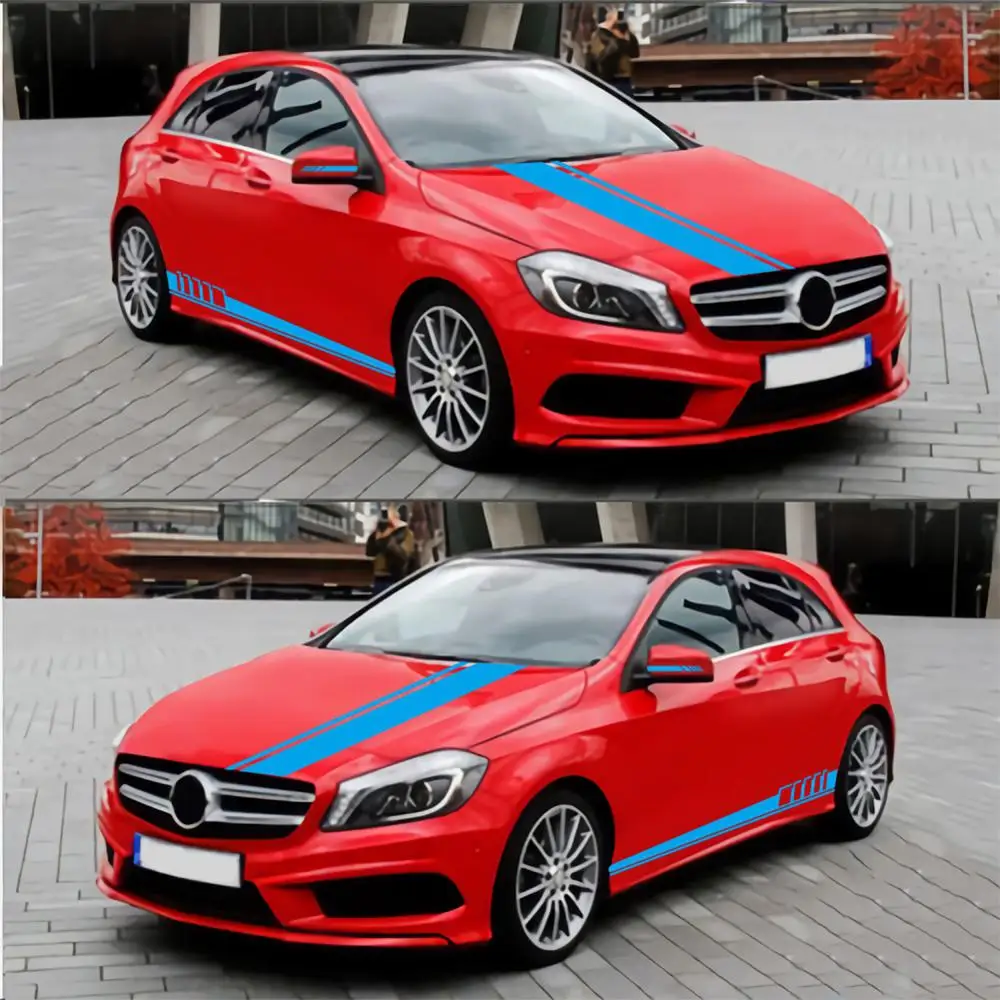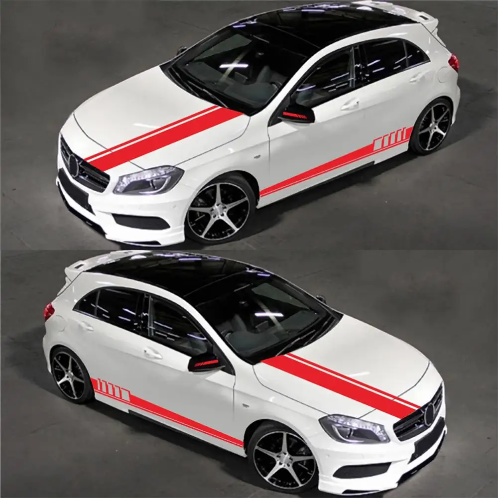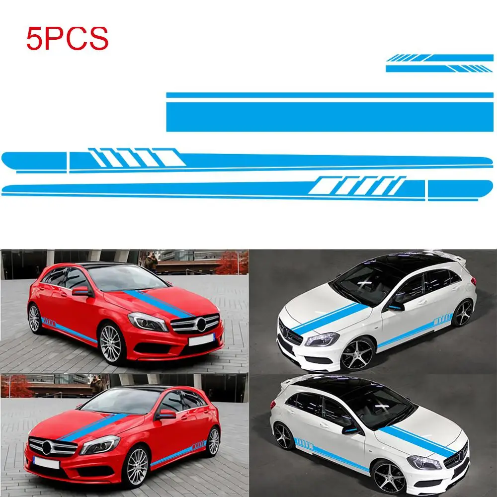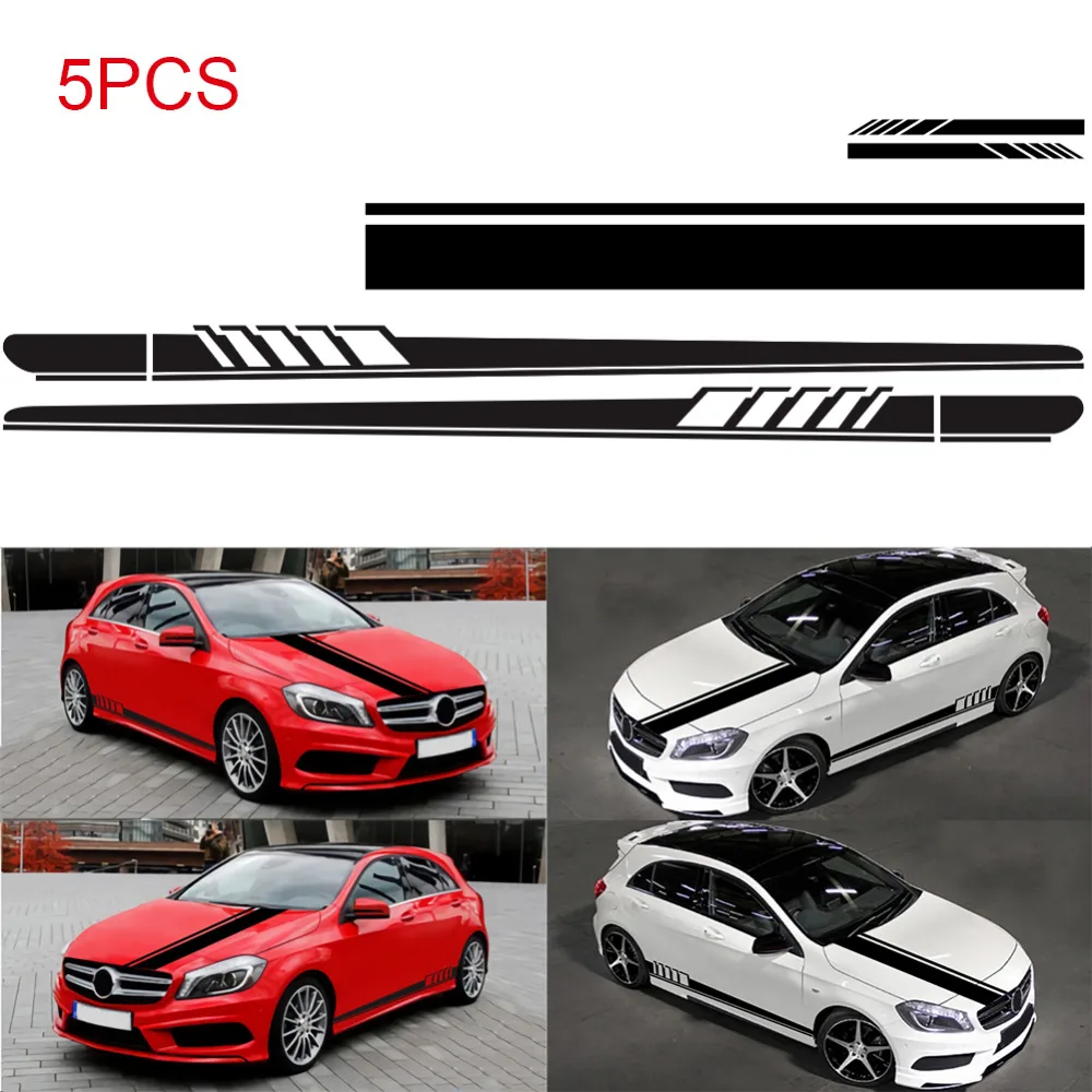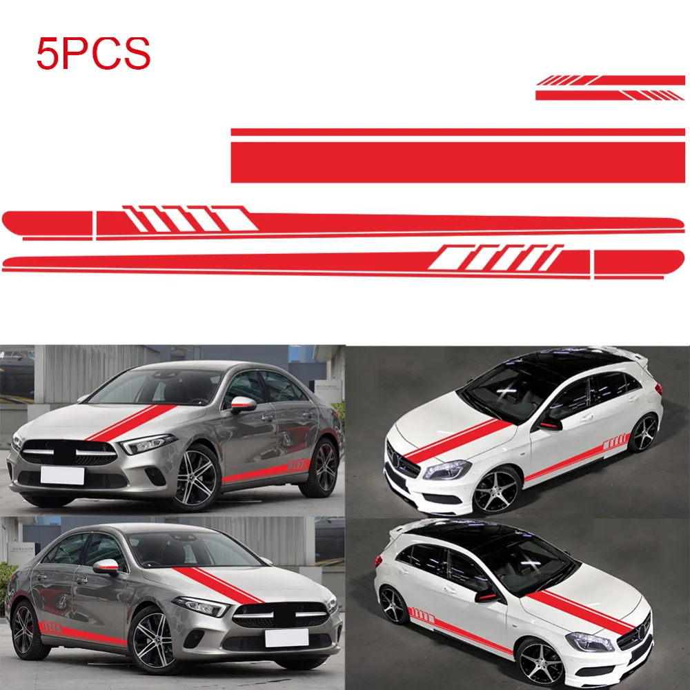 5 шт. боковая Автомобильная юбка Стикеры + капот автомобиля + Зеркало заднего вида Стикеры капюшон винил гонки полоса DIY стайлинга автомобилей Декоративные наклейки для авто
