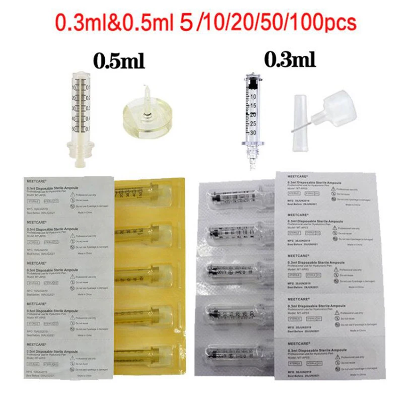 0,3 мл, 0,5 мл, одноразовая Стерильная ампульная головка для гиалуроновой ручки, гиалуроновая пушка, распылитель, расходные материалы для красоты, водный шприц против морщин, подтяжка губ, наполнитель для губ