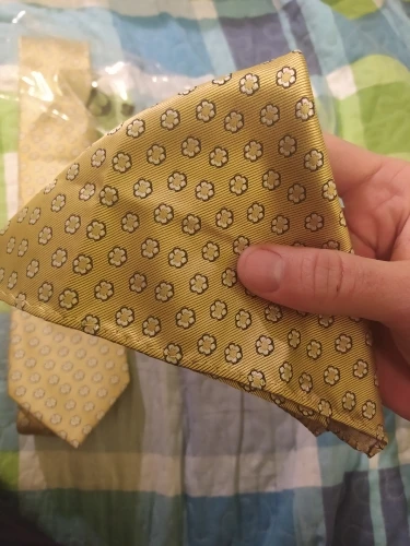Ну, шелк «необычный», но хороший. Носовой платок из синтетического мешка, но несерьезно. Логотип на запонах настолько непригоден для использования. Хорошо по цене.