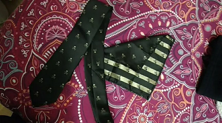 Очень ждали этот заказ, но пришлось открыть спор, так как на запонках череп был обрезан, что честно говоря очень расстроило-набор брался в подарок. Предварительно спишитесь с продавцом и напишите свои пожелания, чтобы не было недоразумений. Хотя мне продавец ответил после получения заказа, что вырезается ткань рандомно и они не могут обещать того, что череп будет расположен посередине. Деньги за заказ вернули, за это респект