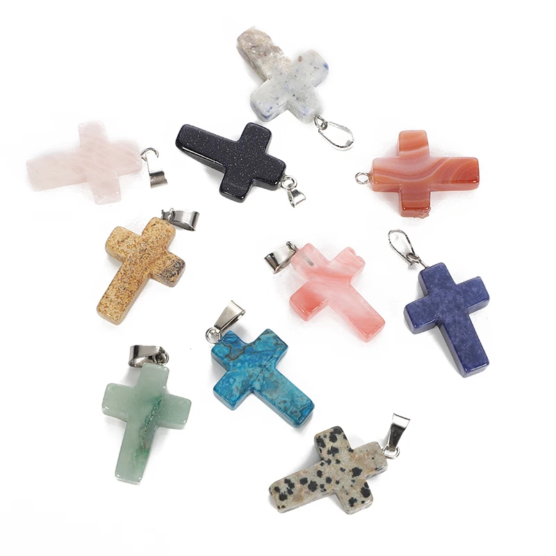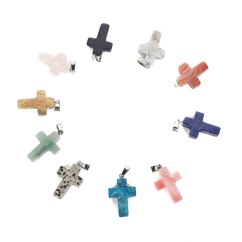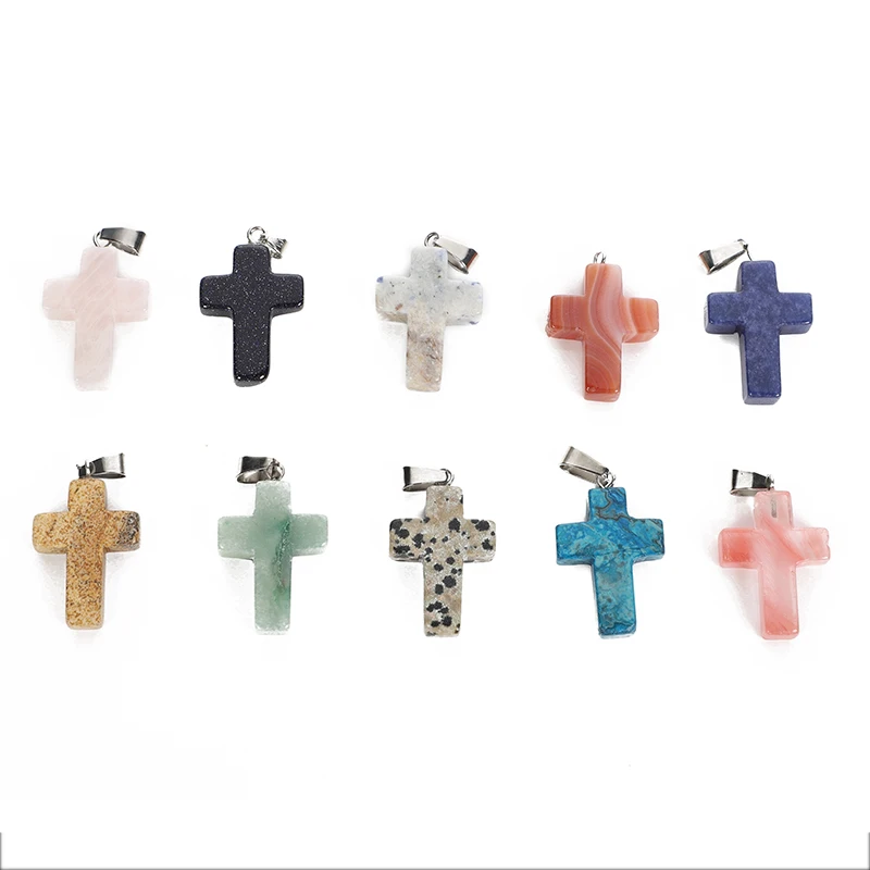 2021 Новая мода DIY 12 цветов Кристалл Агаты натуральный камень подвески крест кулон ожерелье для женщин мужчин ювелирные аксессуары
