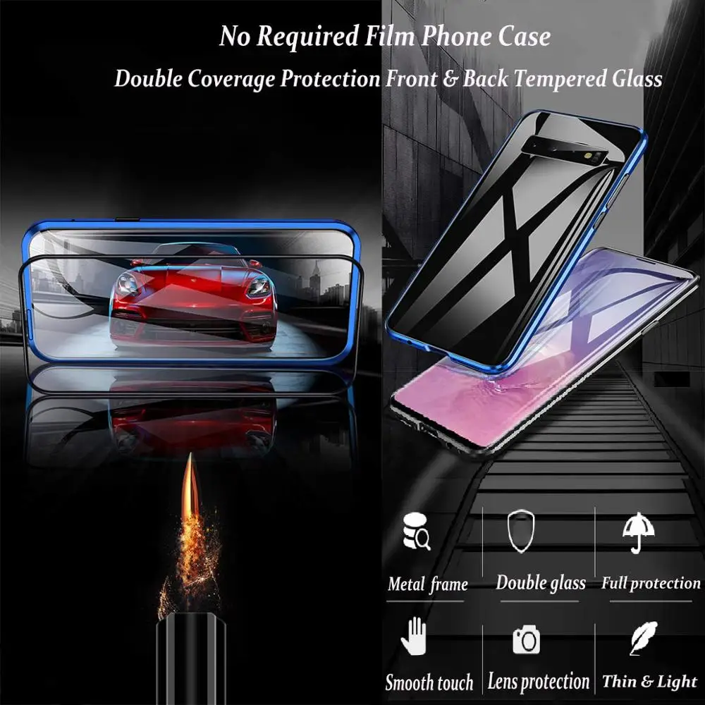 Двусторонний стеклянный магнитный металлический чехол для Samsung Galaxy A50, A70, A40, A30, A20, A10, A10S, A20S, M30S, A7, A8, A9 2018, чехол
