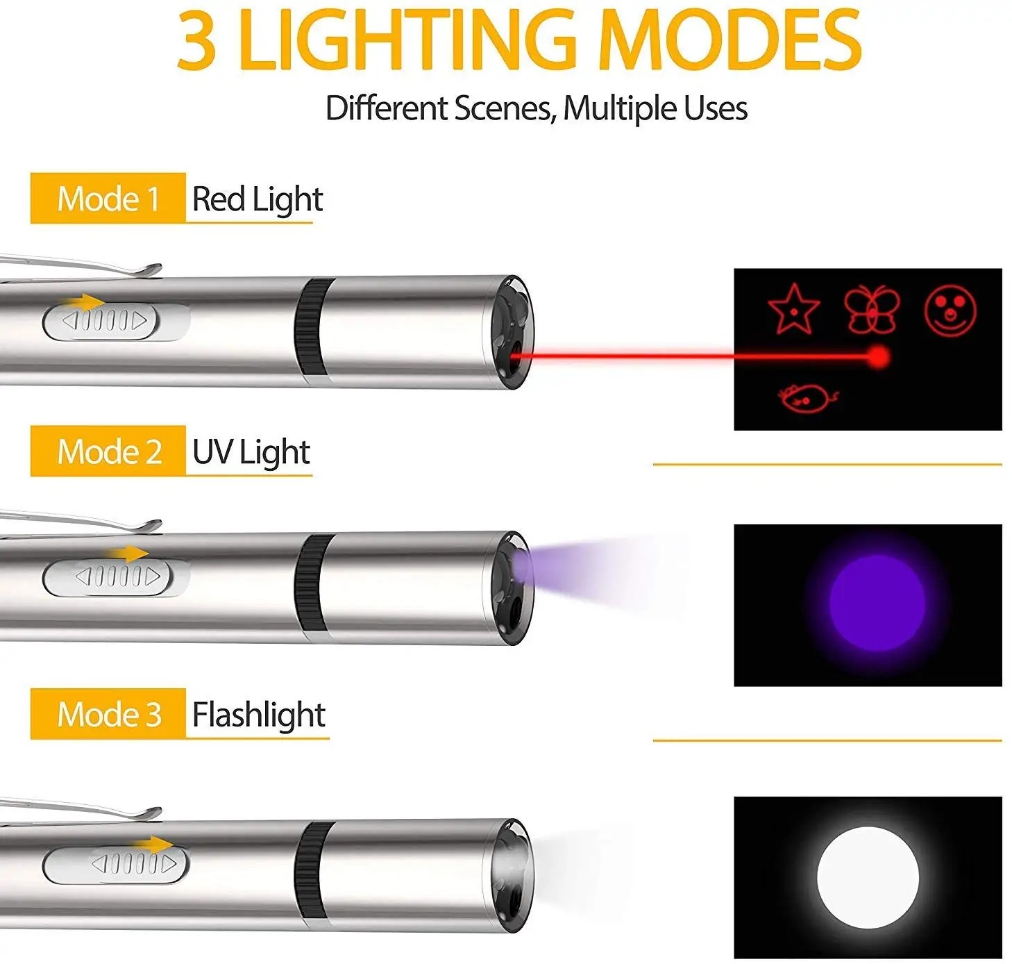 Лазерная указка 3 в 1, детская игрушка для кошек и домашних животных, заряжаемый от USB УФ фонарь онарик, мини-фонарик, ручка для дразнивания