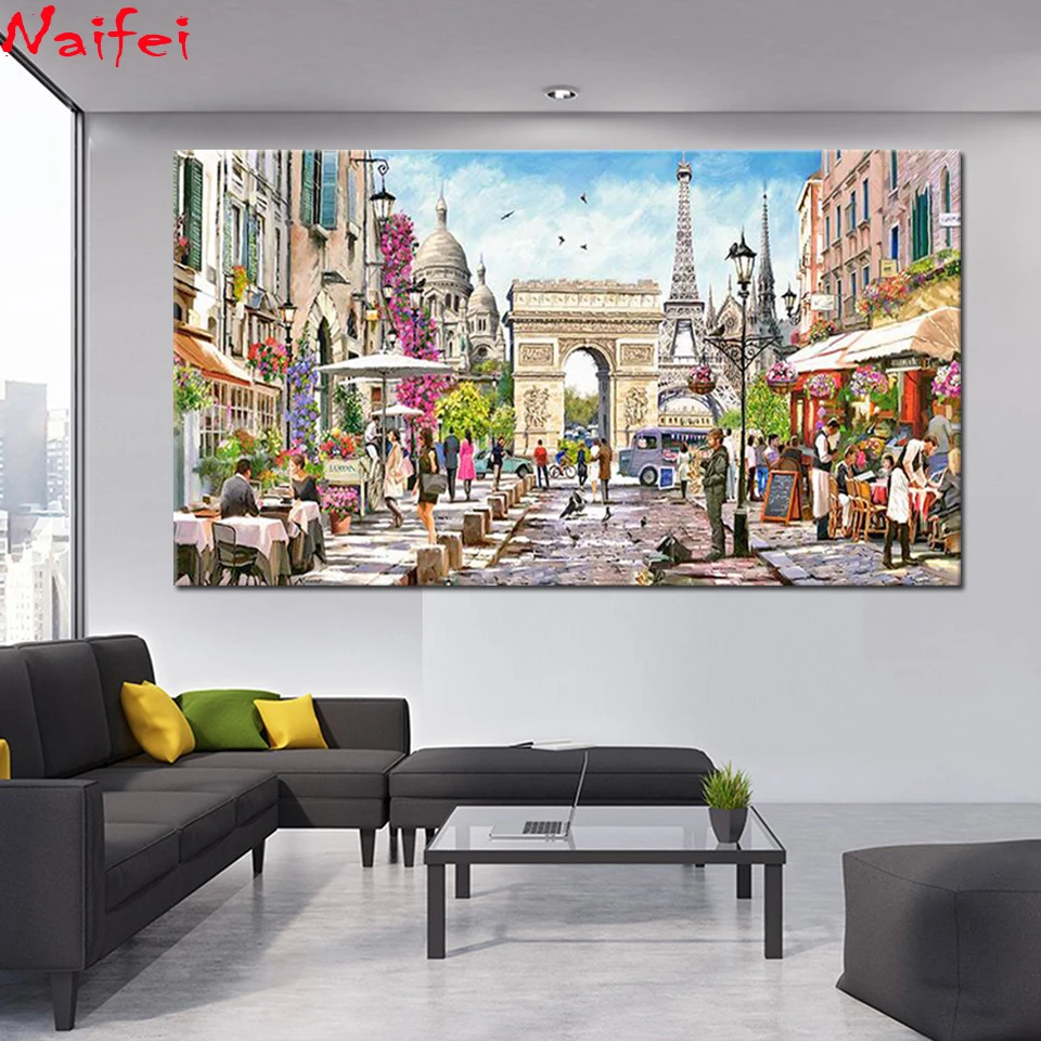 DIY 5d алмазная вышивка мозаика башня Париж улица ручная работа картина полный набор для картин из алмазов Европа пейзаж большой размер arrd вышивка