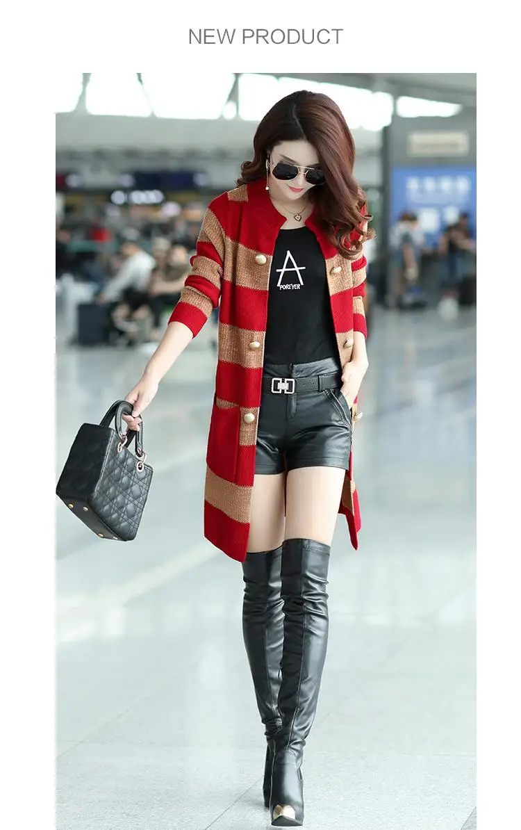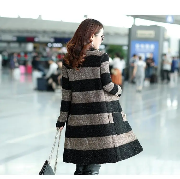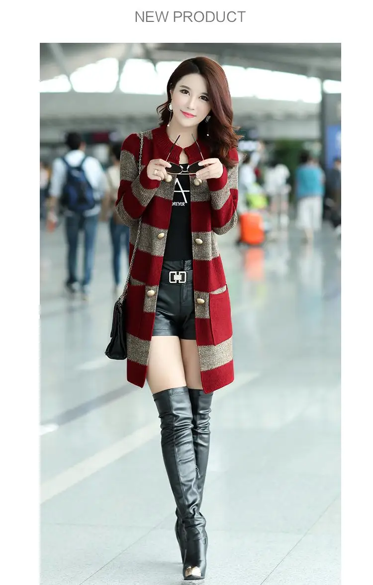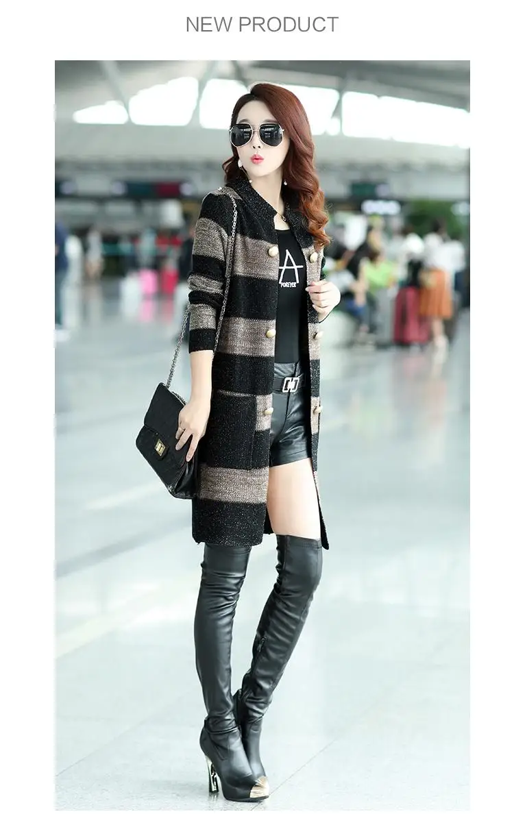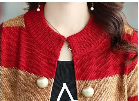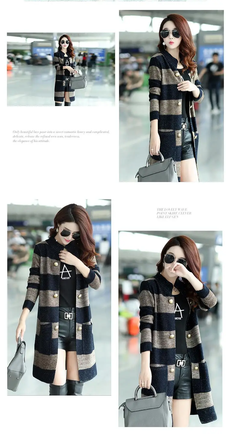 Женский трикотажный кардиган в полоску, повседневный Свободный кардиган с круглым вырезом и длинными рукавами, верхняя одежда с карманами, Осень-зима