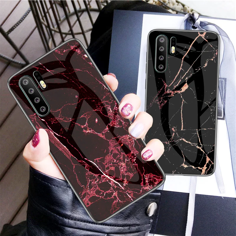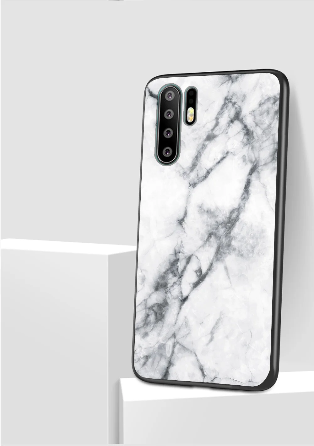 Чехол для телефона из закаленного стекла с мраморным рисунком для Huawei P40 P30 P20 P10 lite Pro plus, задняя крышка из закаленного стекла с мраморным рисунком