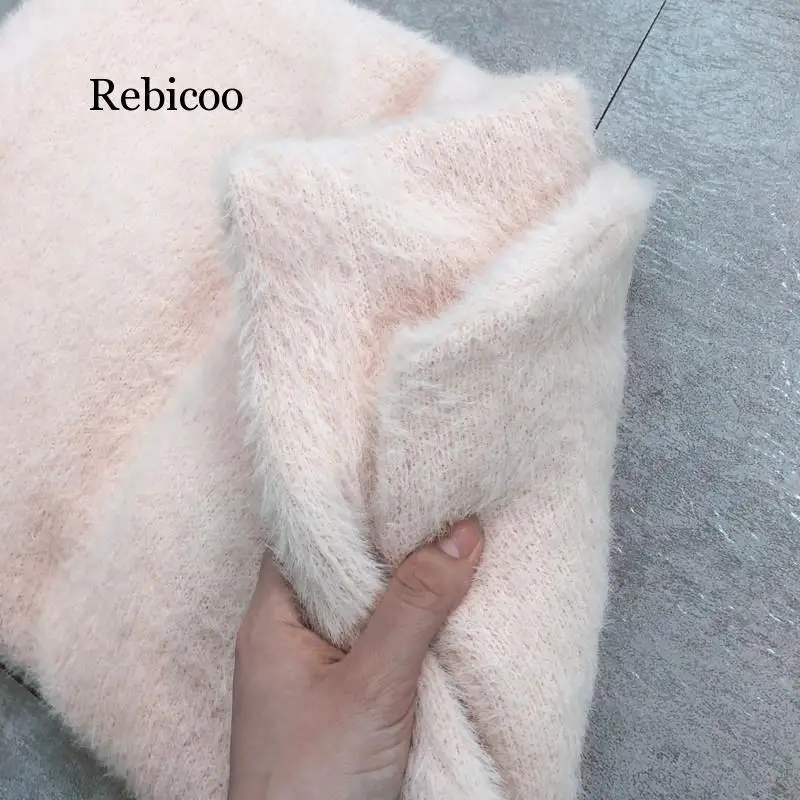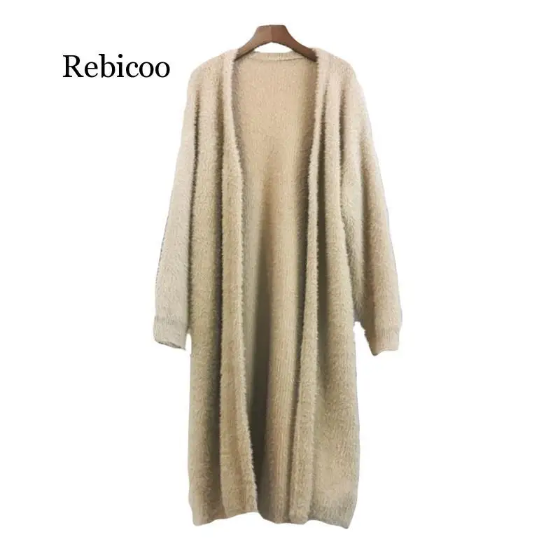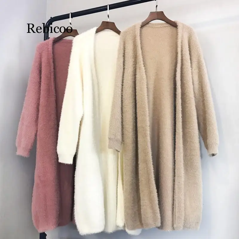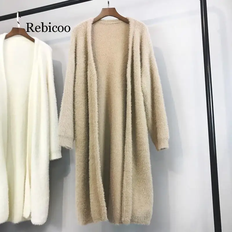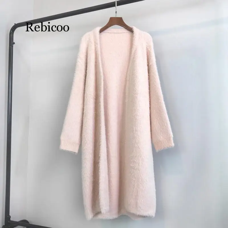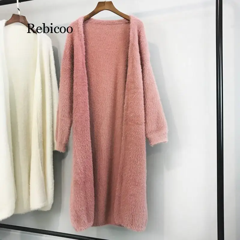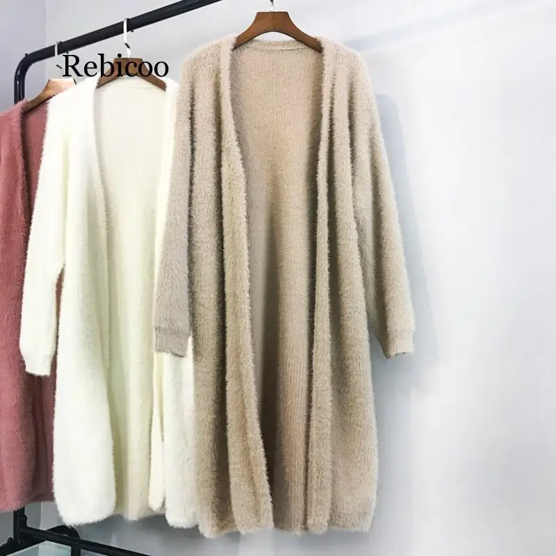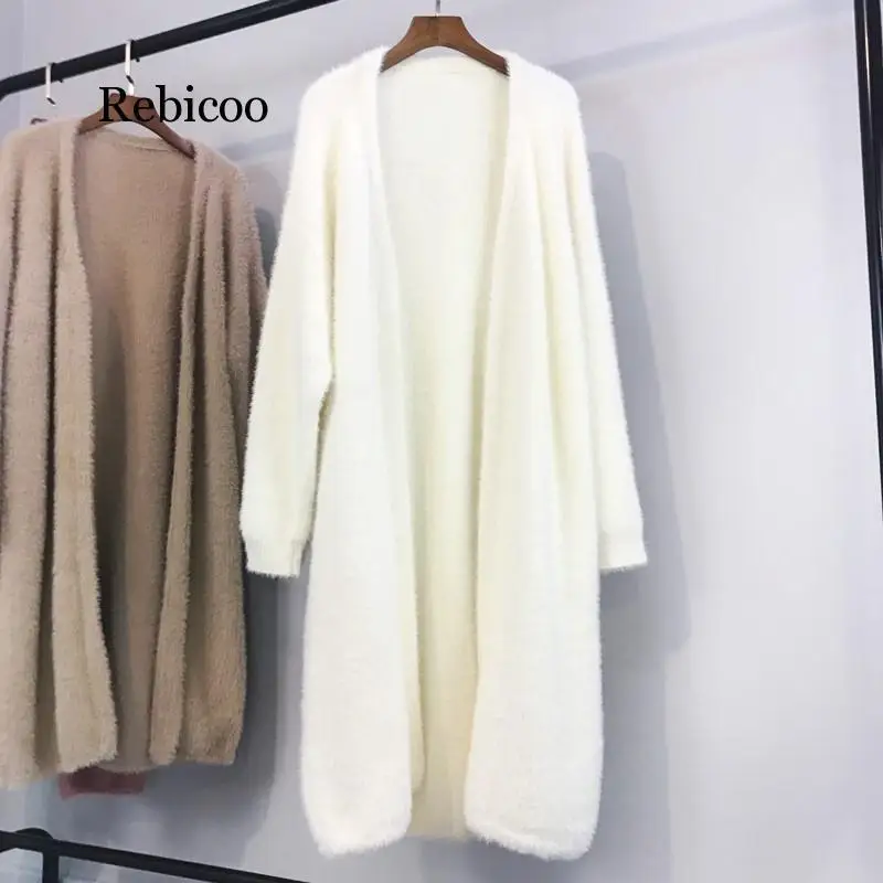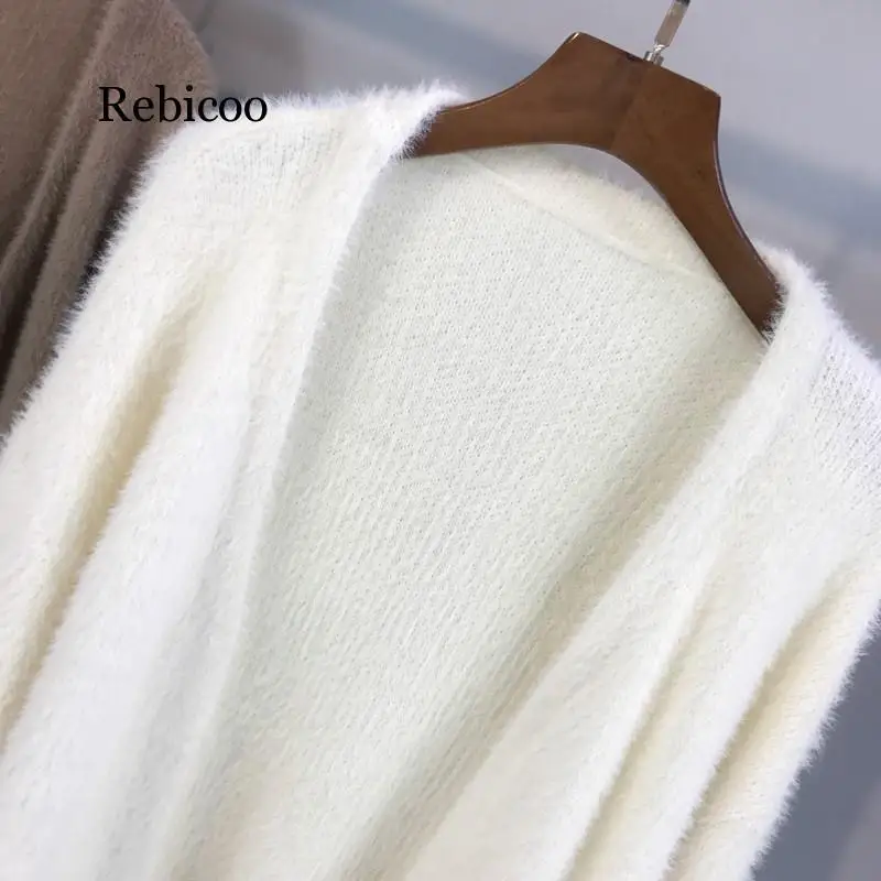 Свободный бархатистый свитер из искусственной норки, однотонный кардиган, Повседневная теплая Женская верхняя одежда, Элегантная трикотажная одежда для женщин