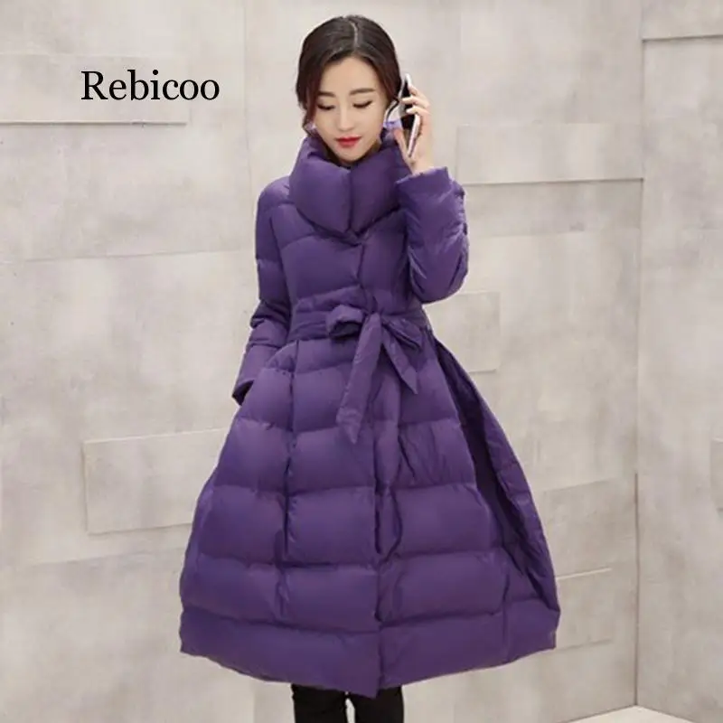 Зимние Модные женские пальто средней длины куртка с хлопковой подкладкой Толстая парка со шнуровкой на талии и широким подолом пальто