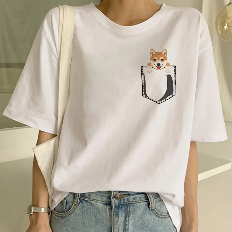 Футболка Maycaur женская с карманом, милая рубашка с принтом Шиба-и...