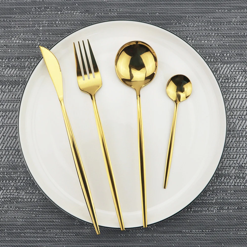 Набор столовых приборов из нержавеющей стали 1810 черного и золотог...