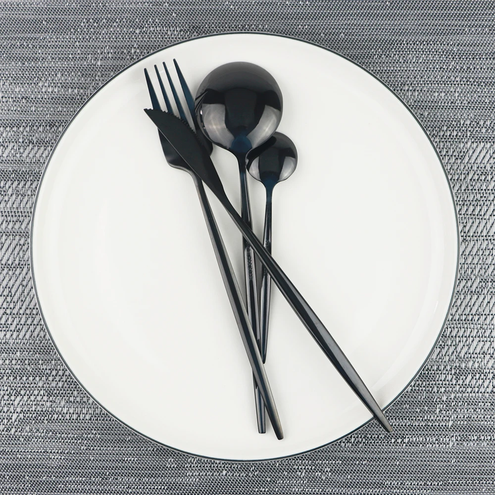 Набор черных столовых приборов из нержавеющей стали, 16 шт., 1810 дюймов
