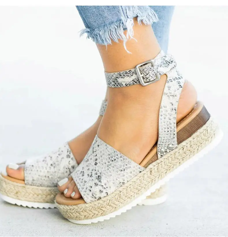 Женские босоножки на высокой танкетке, босоножки на плоской подошве с пряжкой, большой размер 35-43, лето 2020