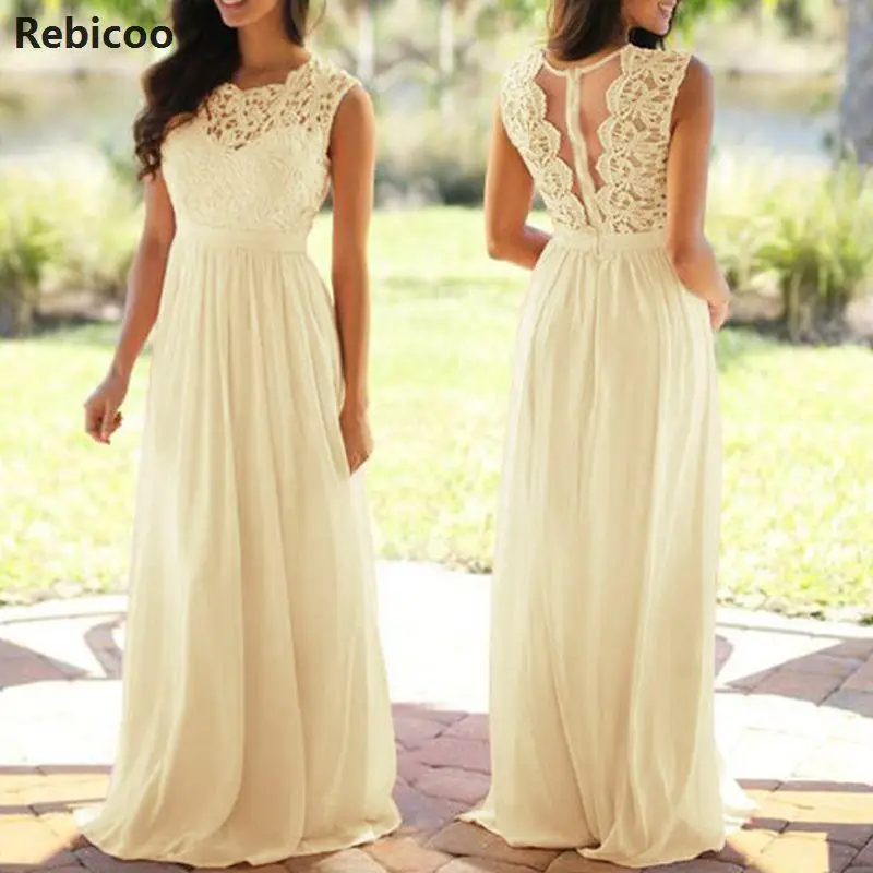Женское длинное платье подружки невесты, кружевное платье без рукав...