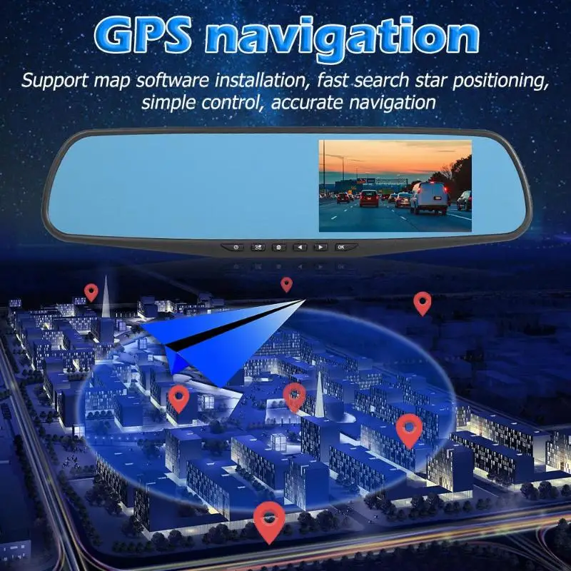 Видеорегистратор DVR, 4,3 дюйма, IPS 1080p, зеркало заднего вида с ...