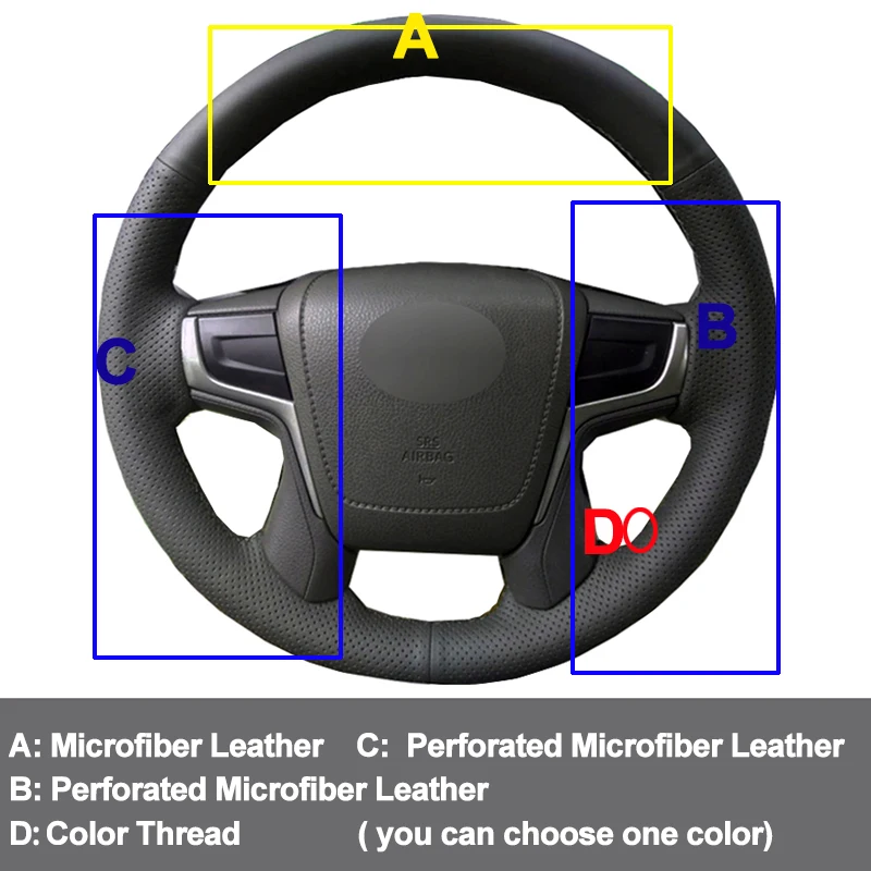 Чехол для автомобильного рулевого колеса, чехол для Toyota Land Cruiser 2016 2017 2018 2019 2020 Land Cruiser Prado 2018 2019